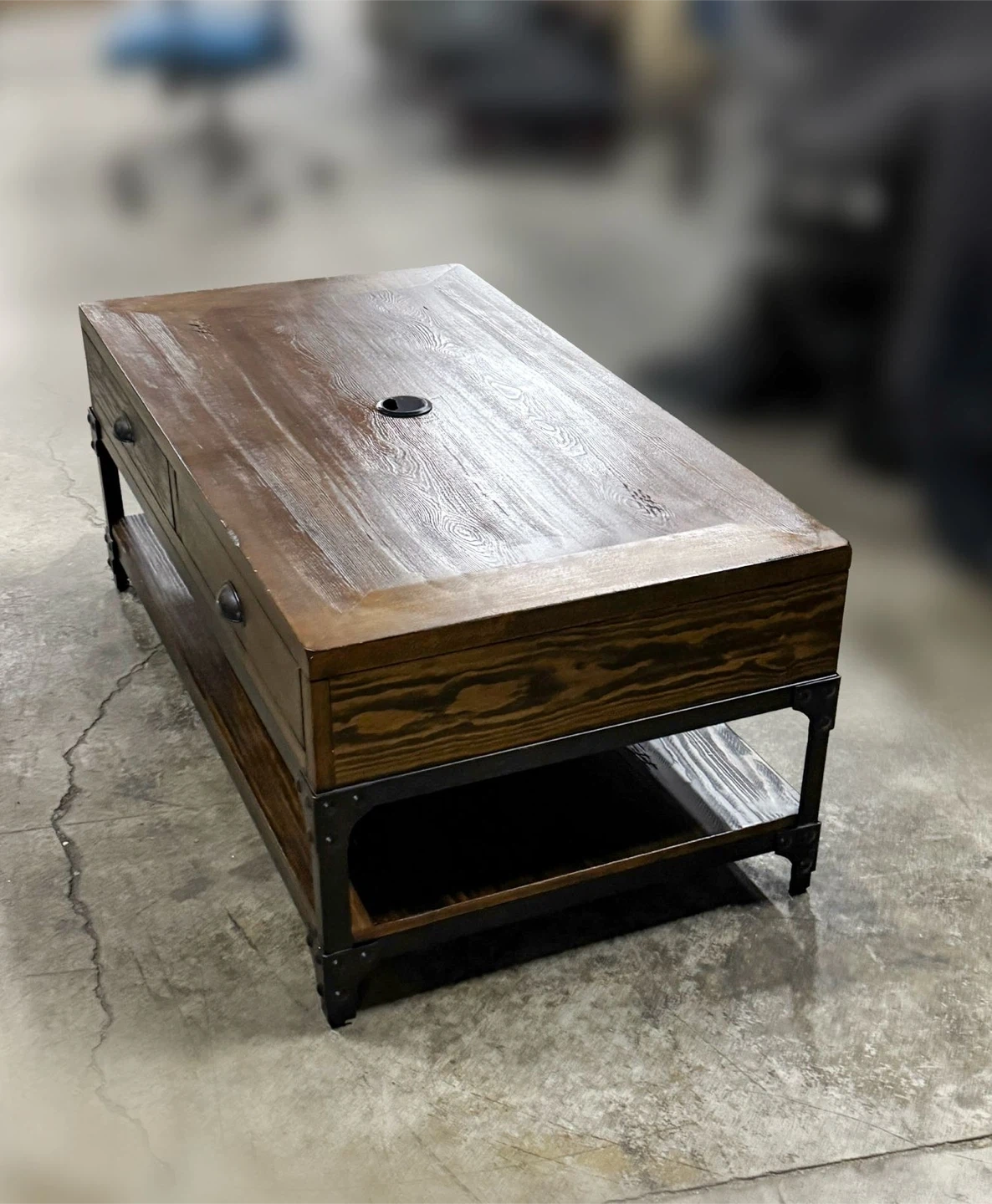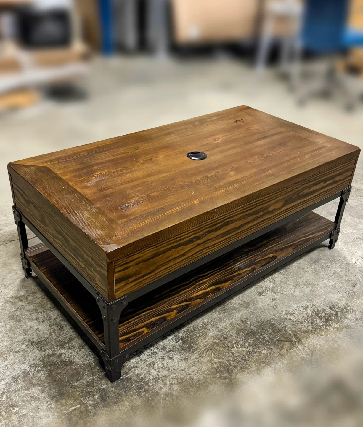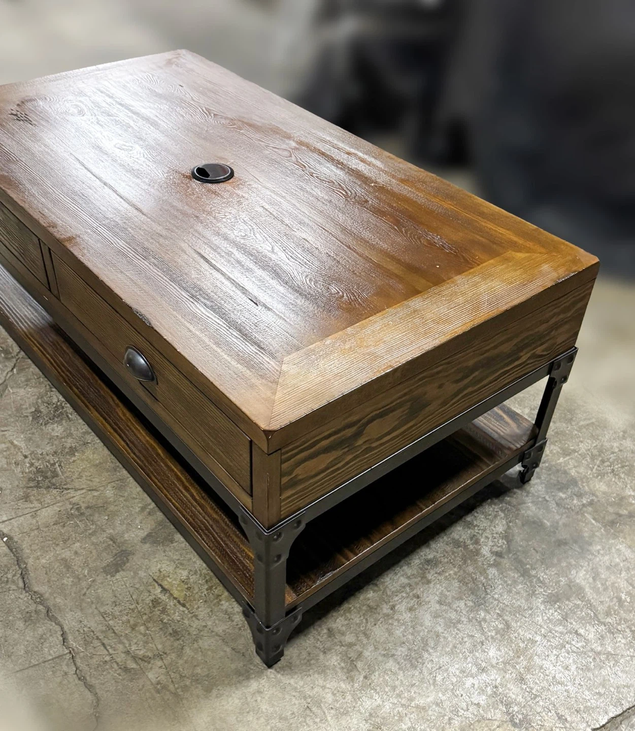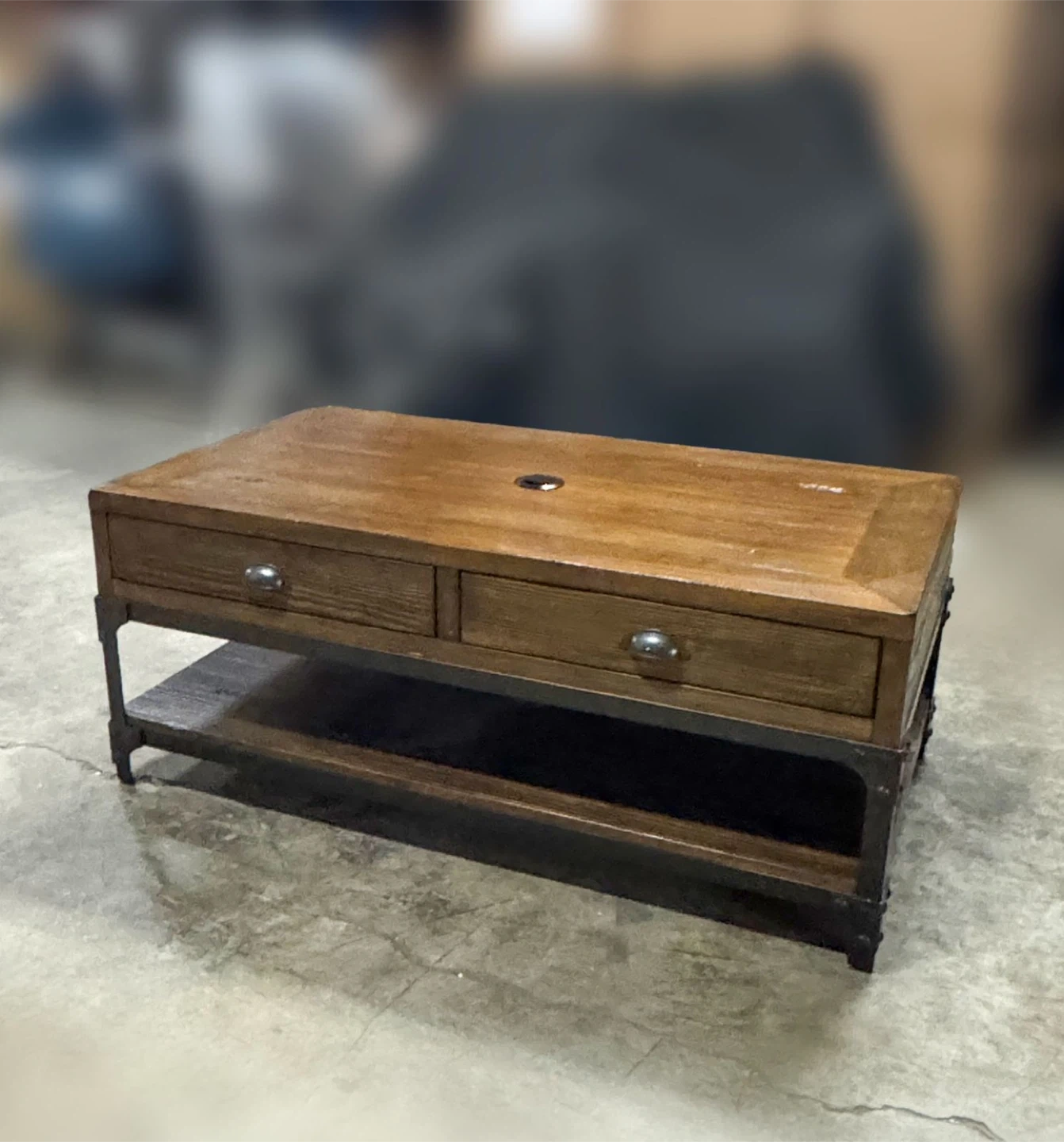 Bring character and storage to your living space with this solid wood and metal-frame coffee table. Perfect blend of rustic charm and industrial design – built to last and stylish in any home. 🪵 Features: • Solid wood top with rich walnut finish • Sturdy black metal frame with rivet details • 2 pull-out storage drawers with vintage hardware • Open bottom shelf for extra storage or décor • Center grommet for cable management (can be left as-is or used for electronics setup) 📏 Dimensions: Approx. 42” L x 24” W x 18” H 💸 Asking $150 CAD 📍 Located in Mississauga – pick-up only