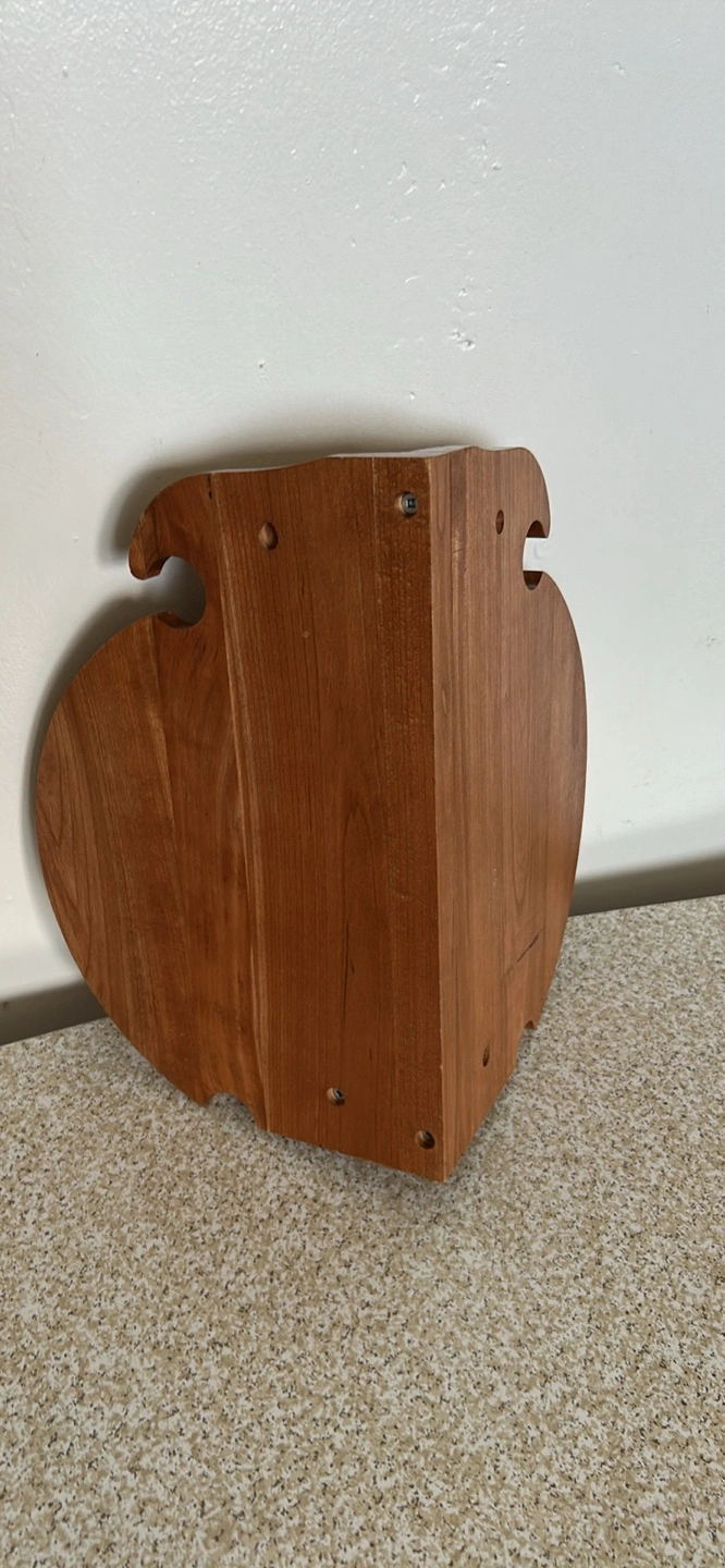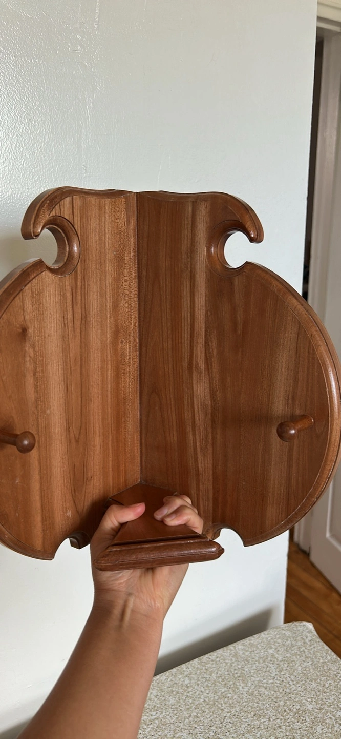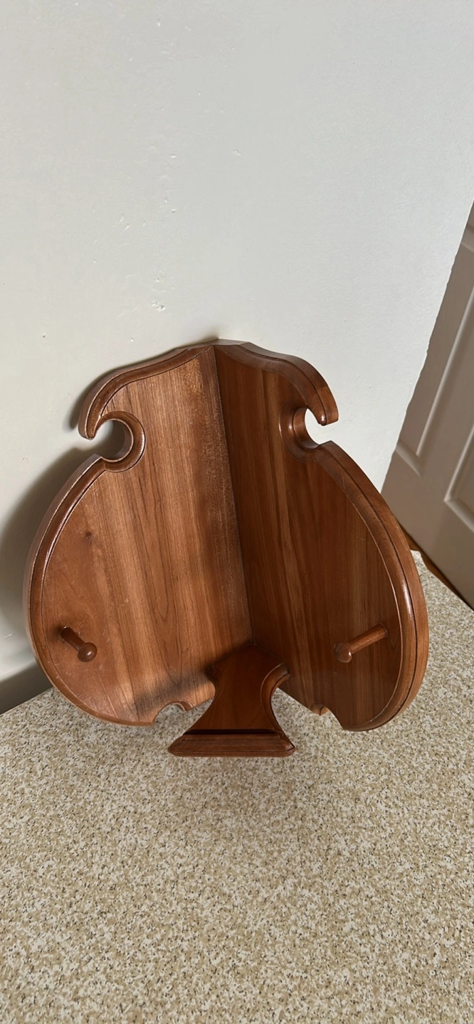 Selling a unique wooden card holder stand shaped like a spade! It's perfect for holding any home as a decorative piece. The wood has a nice, warm tone and is in great condition.