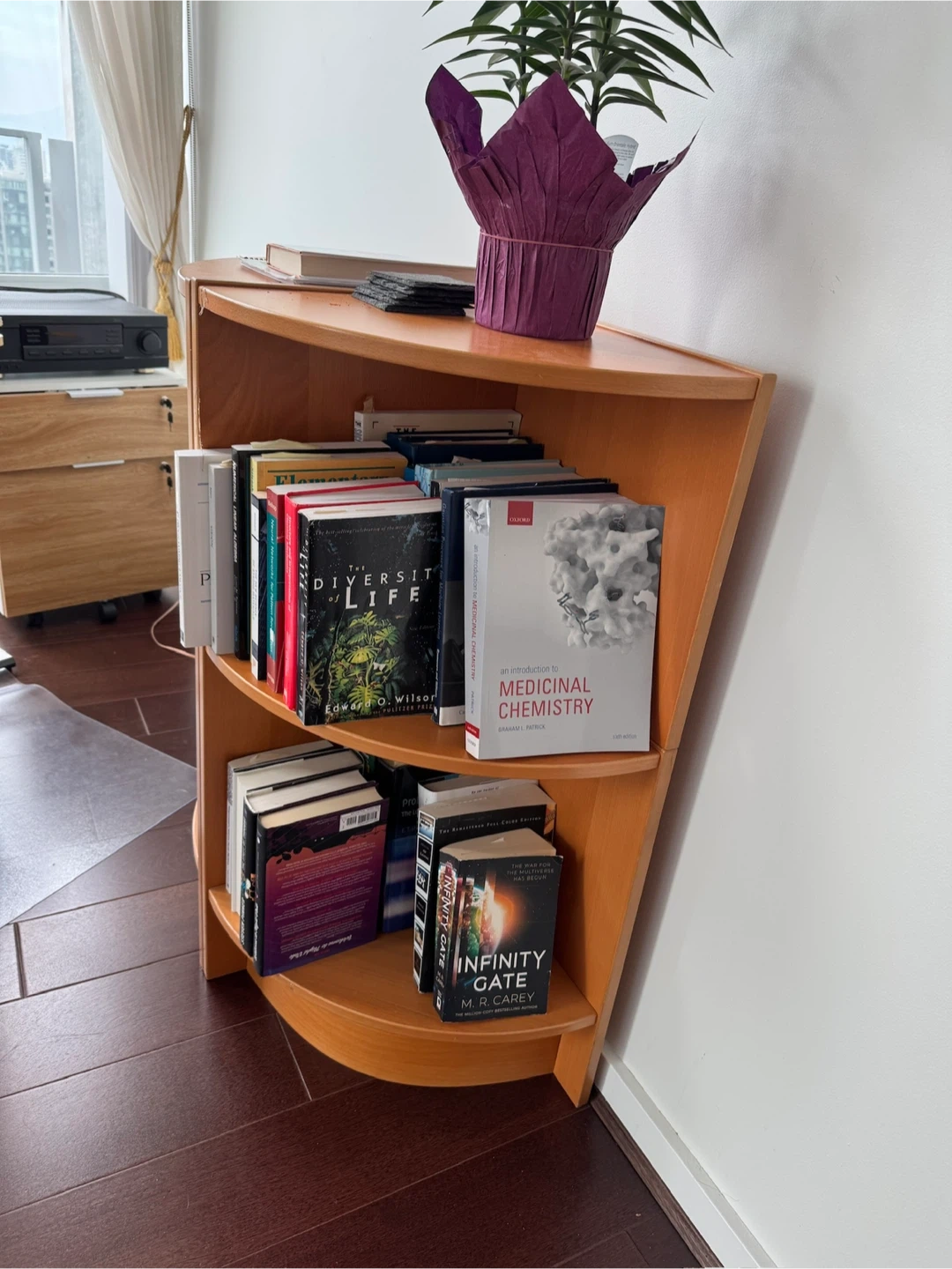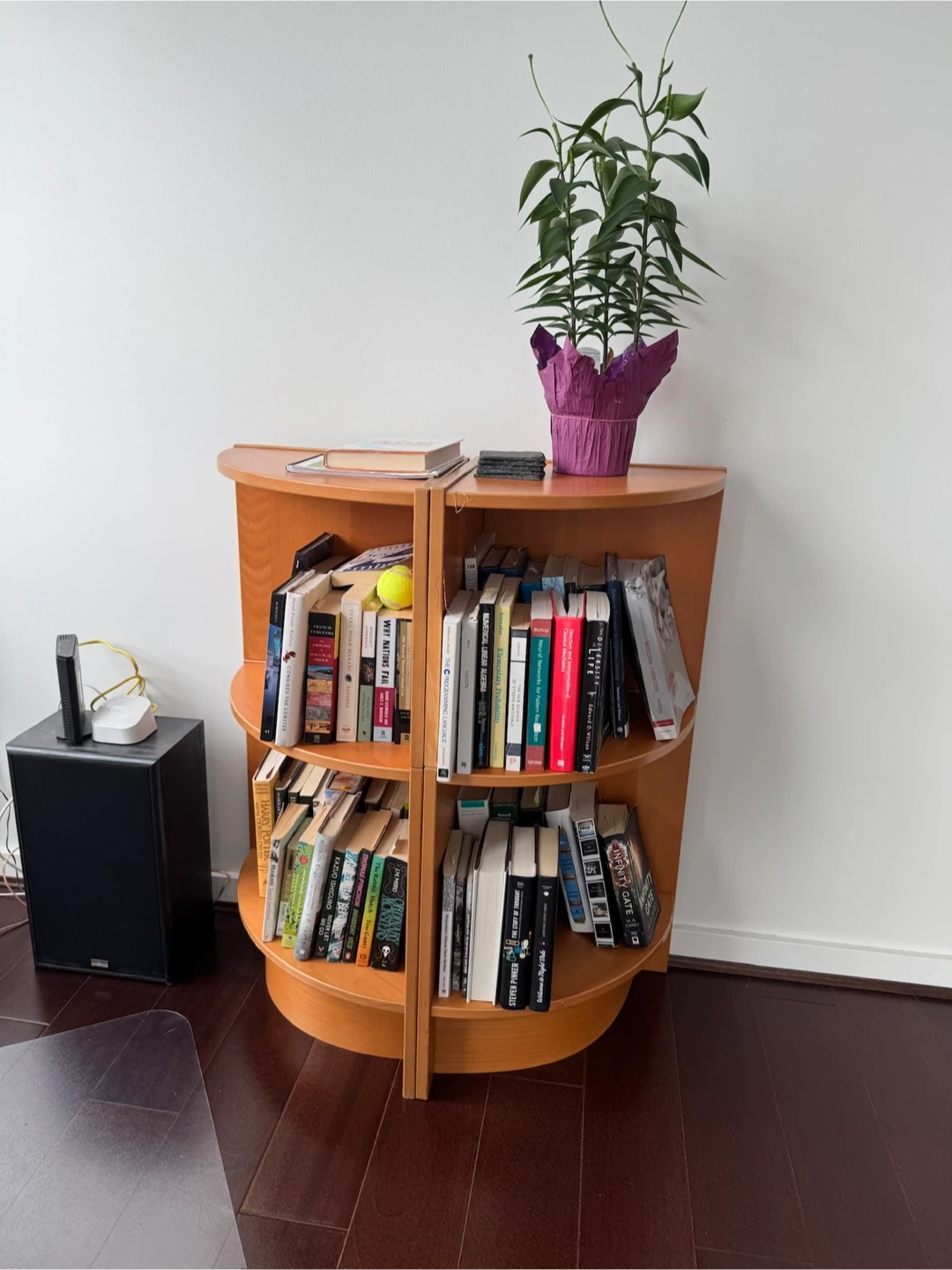 Selling a cute wooden corner shelf units ! It measures about 16 inch’s wide. Perfect for displaying books or plants in a small space. It's in good condition and ready for a new home - listed price is for 2 units placed back to back here