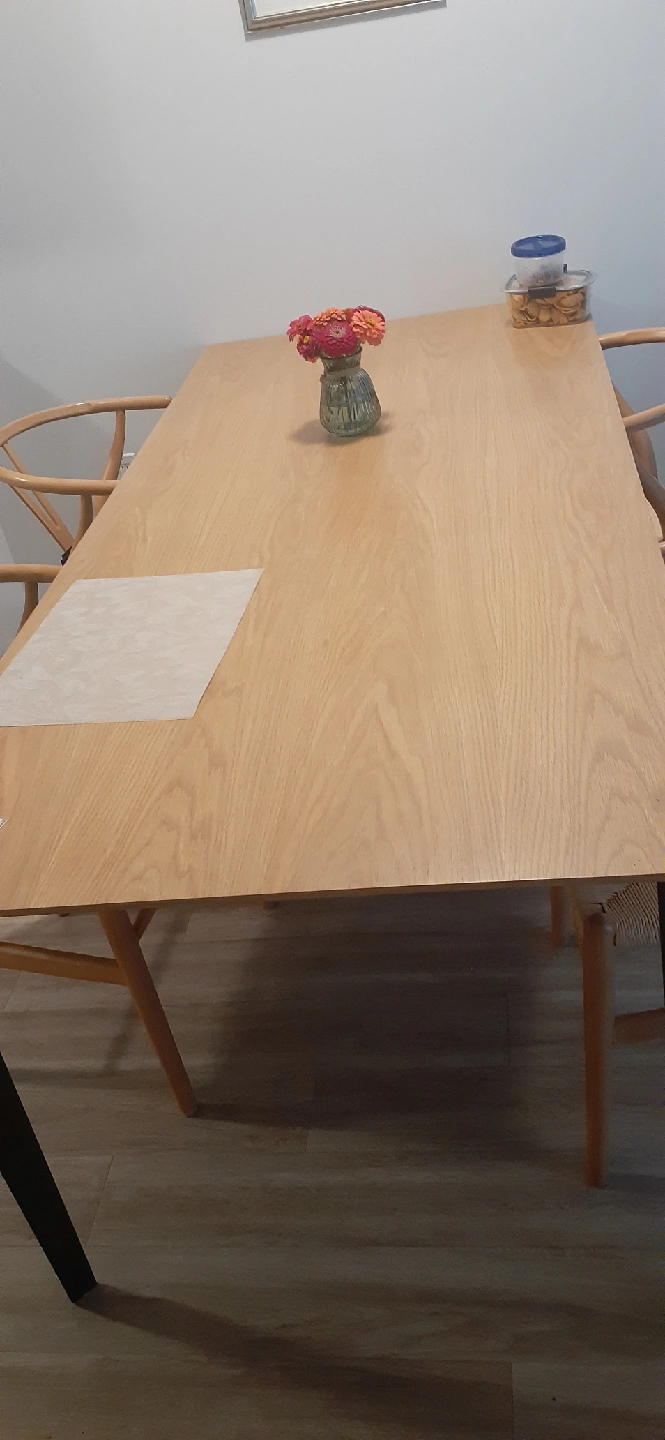 size : 78"×35" a wooden dining table in good condition. It has a light wood finish and a simple, classic design. Perfect for a small dining area or kitchen!