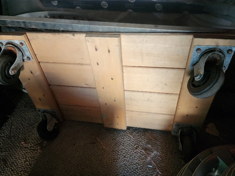 Selling a wooden dolly with wheels. It's in used condition, but still works great for moving heavy items around. Perfect for anyone needing a little extra help with their next move or project