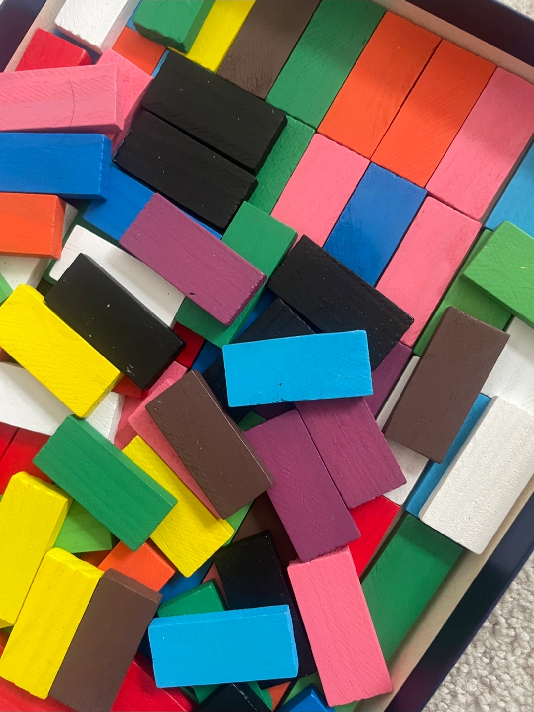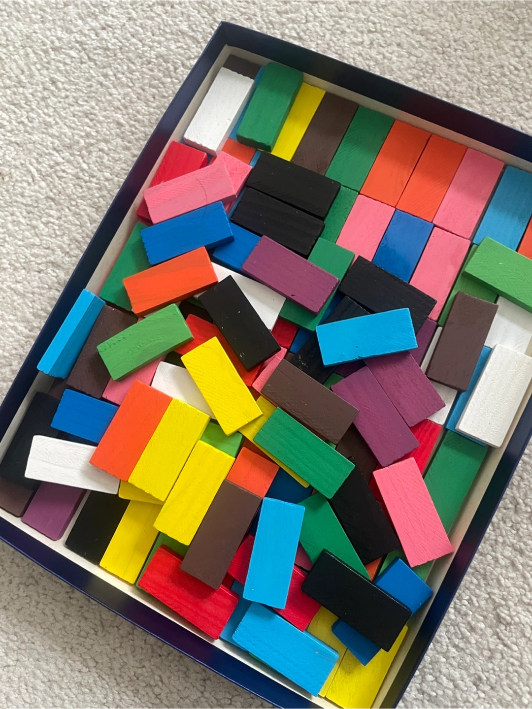 Looking to sell a set of wooden dominoes! They come in a variety of colours and are in great condition. Perfect for kids or adults who enjoy a classic game