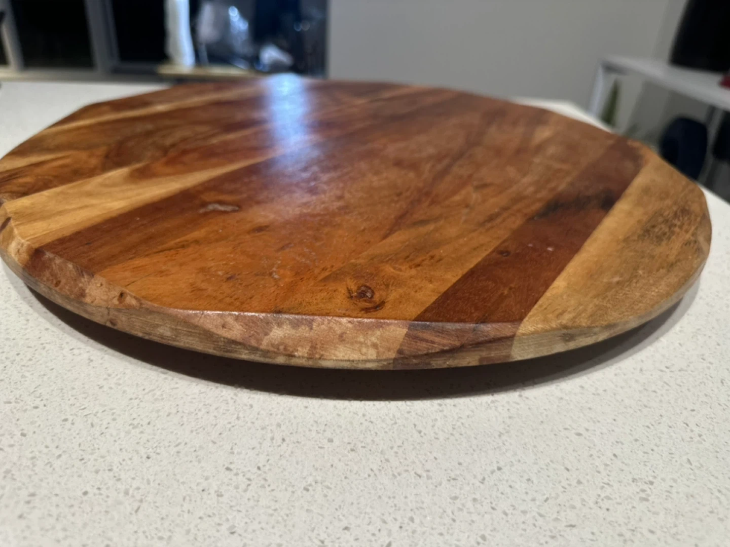 Selling a wooden Lazy Susan turntable! It's perfect for organizing your kitchen or dining table. It has a nice wood grain and is in great condition. Great for sharing food at the table or organizing spices in the kitchen!