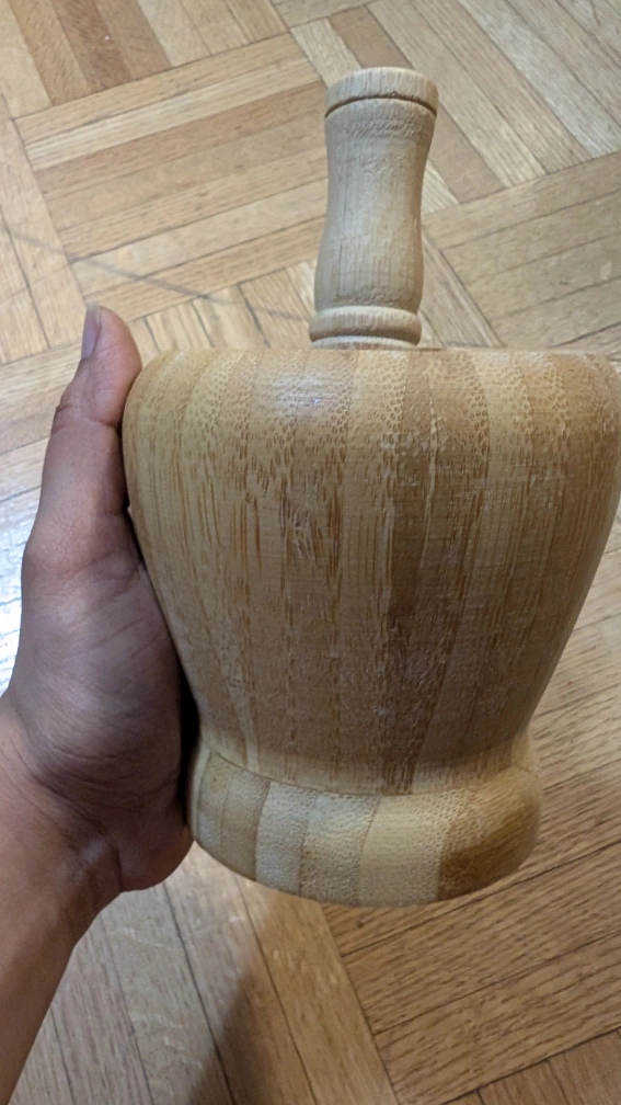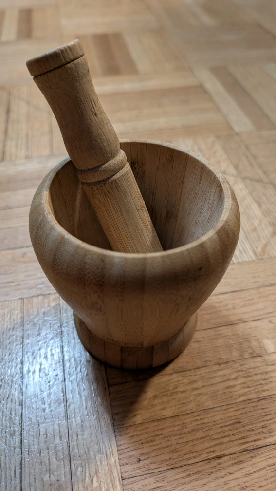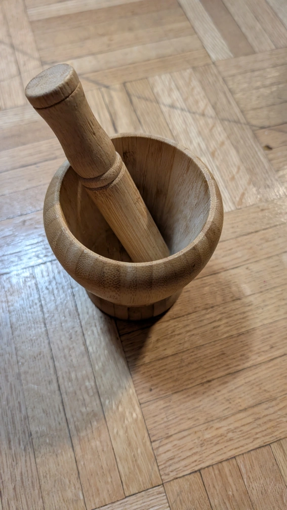 Wooden mortar and pestle set. From Smoke and Pet free home. Available for pickup.
