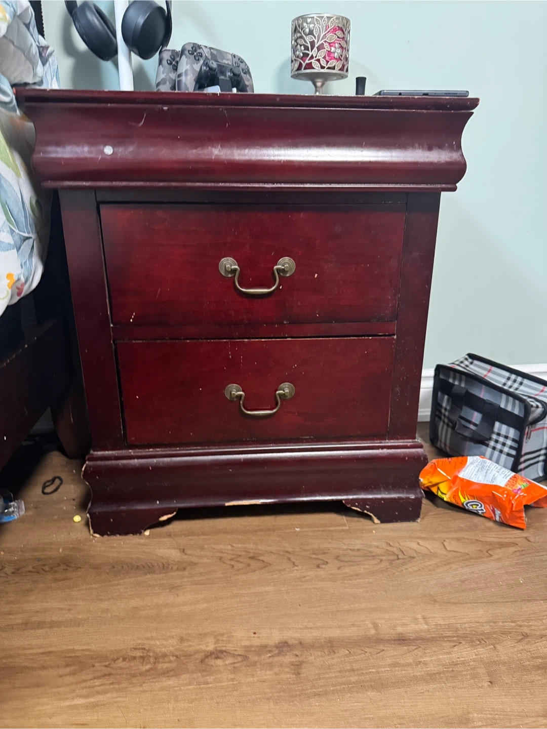 Selling a wooden nightstand with two drawers. It's perfect for adding some extra storage to your bedroom. It has a classic design and would look great in any home….if u want both then 60$…if one then 35$ each