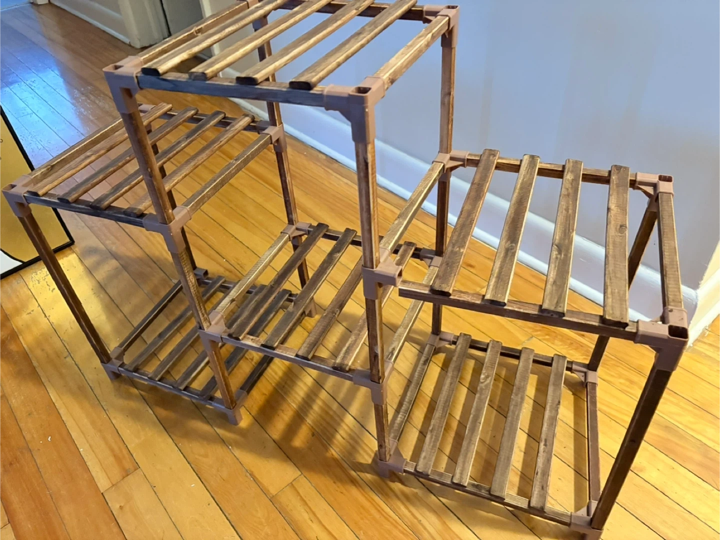 Selling a wooden plant stand! It's in great condition and perfect for displaying your plants. It has multiple tiers, so you can show off a variety of sizes and types of plants. It's a great way to add some greenery to your space