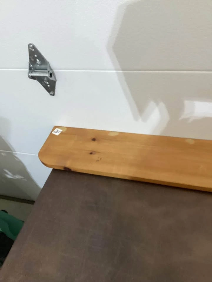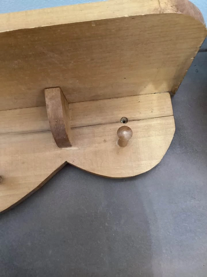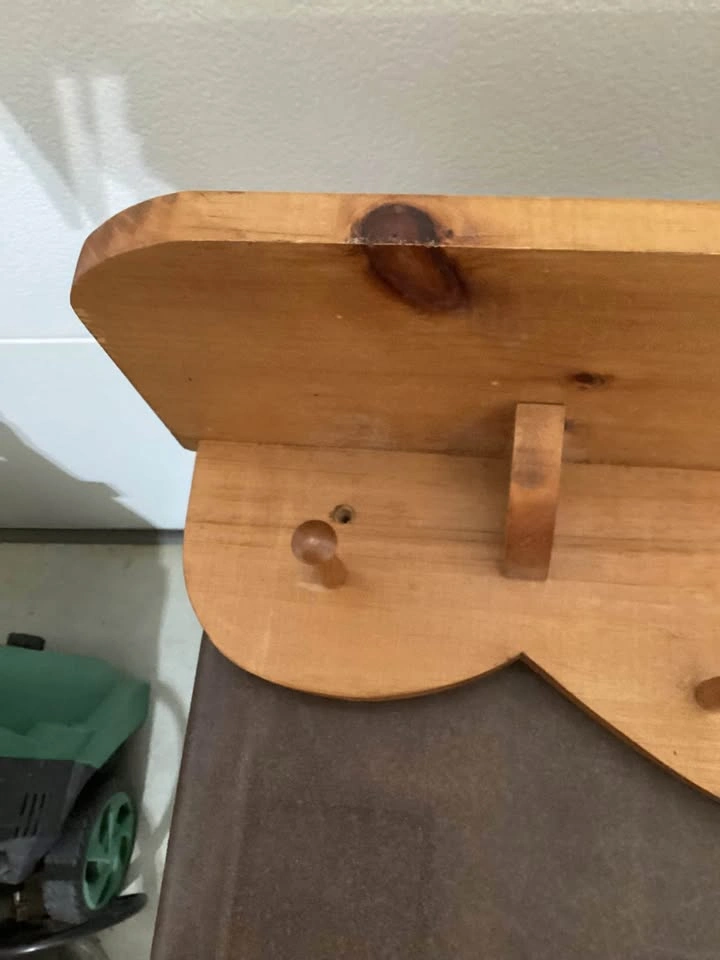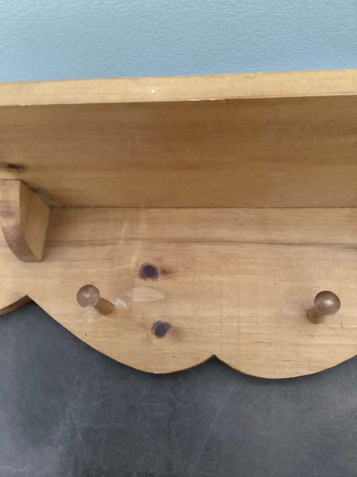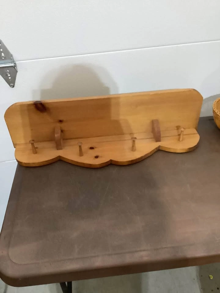 Wooden shelf..withpegs/hookslocated in Leduc