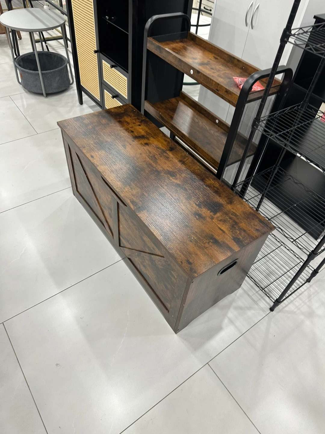 Looking to add some extra storage and seating to your home? This wooden storage bench could be just what you need! It has a rustic look and offers a convenient place to store items while providing a comfortable place to sit. Perfect for entryways, living rooms, or bedrooms!