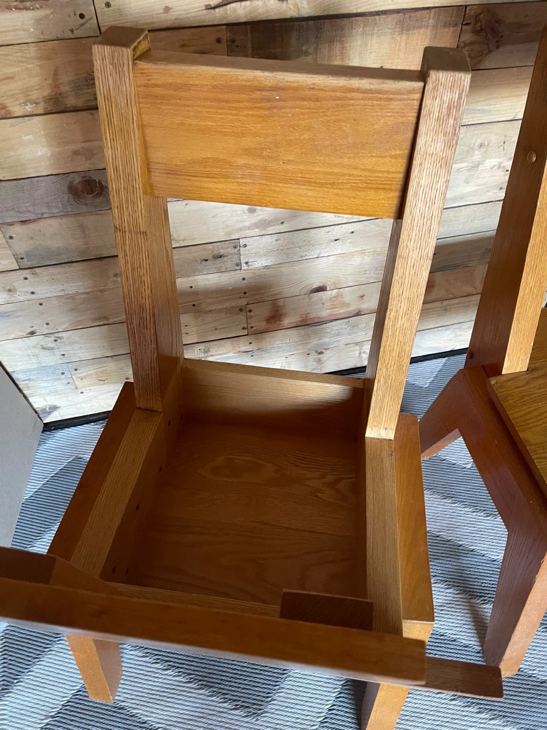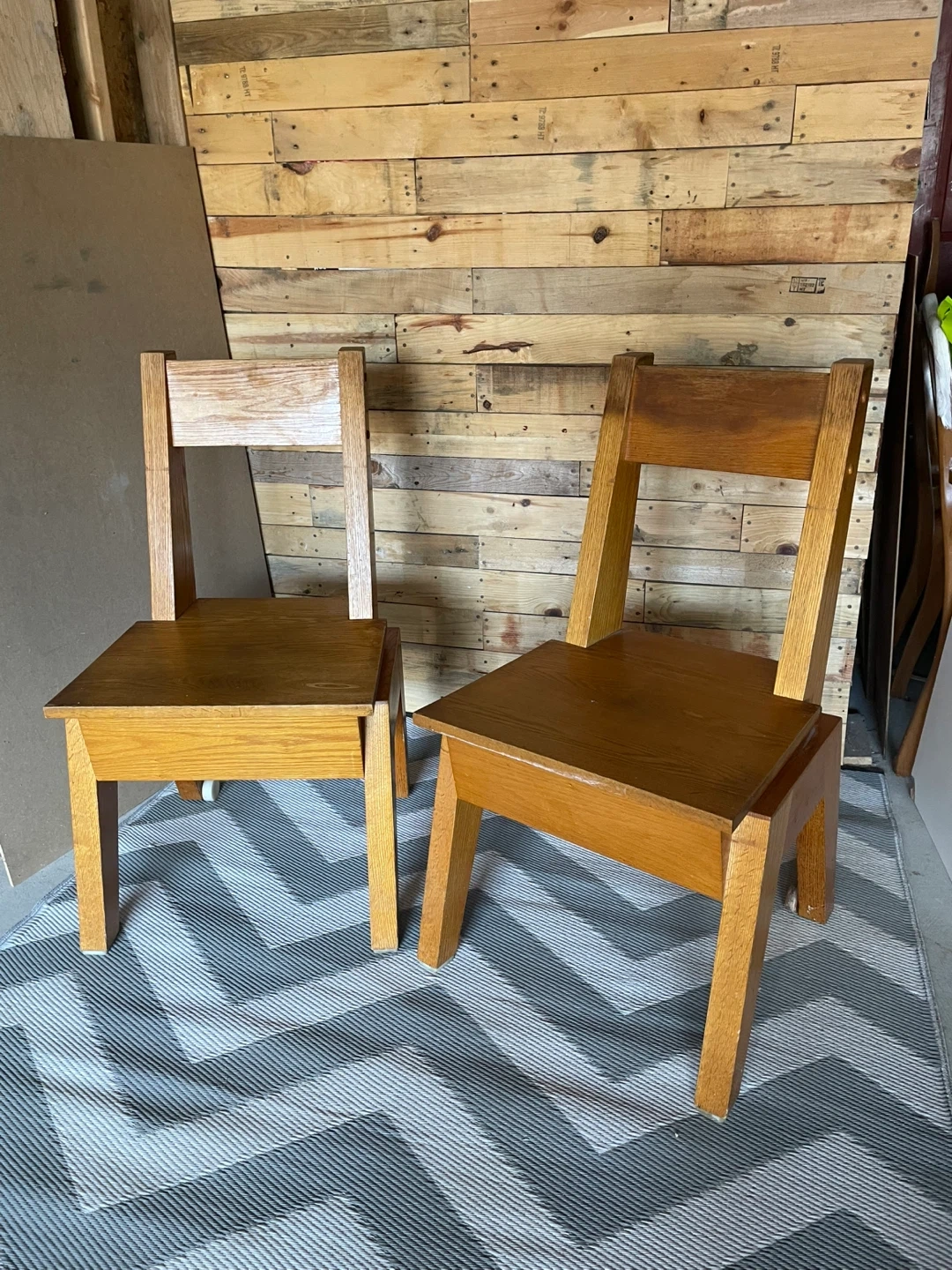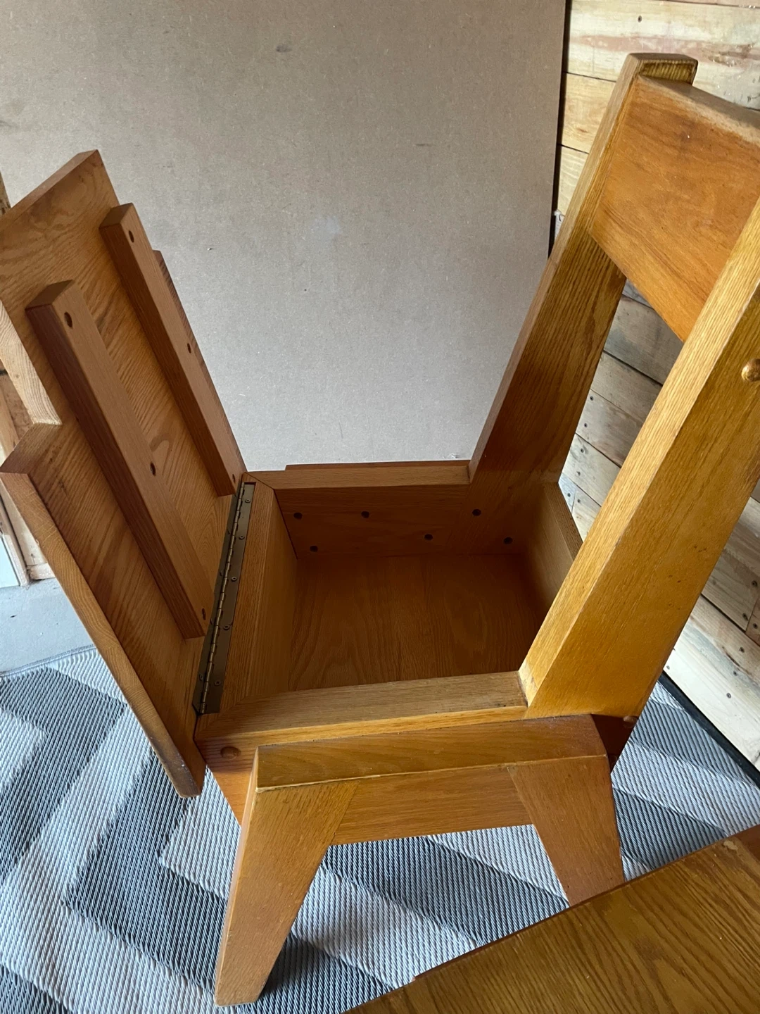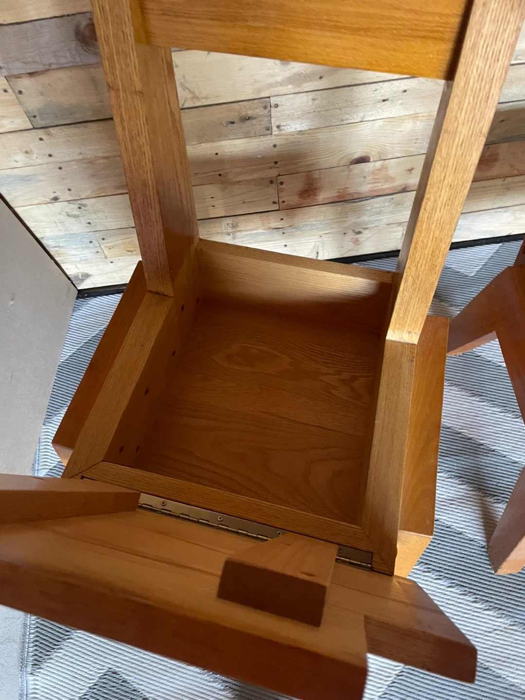 Only one left! These wooden chairs are not only functional seating but also offer a clever storage solution! The seats lift up to reveal a hidden compartment, perfect for decluttering your space. They're sturdy and have a warm, natural wood finish that would complement any room. $65 each