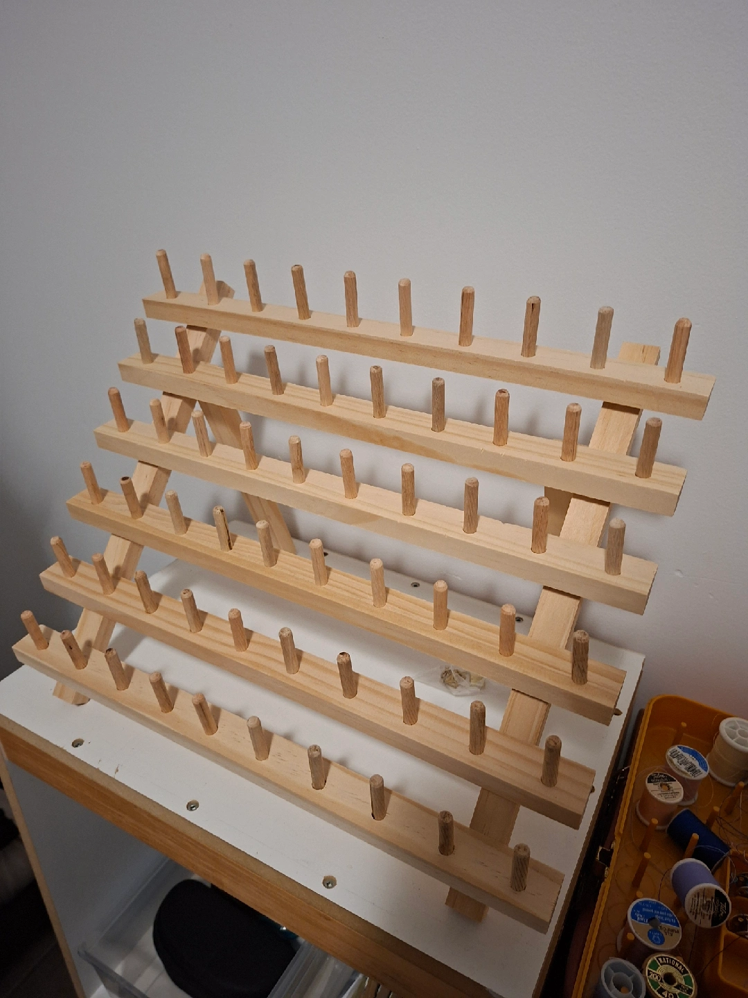 Selling a wooden thread rack organizer! It's perfect for keeping your sewing threads neat and tidy. This organizer is in great condition and ready to help you organize your crafting space All hardware is available