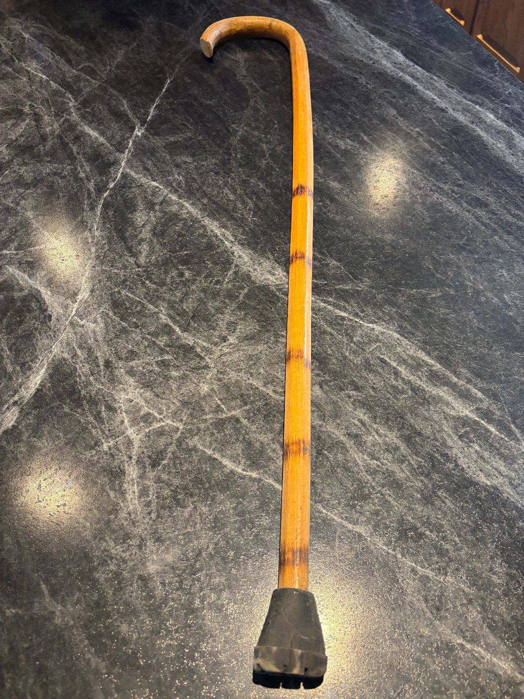 Selling a wooden walking cane. It's in good condition and has a rubber tip for added grip. Perfect for anyone needing a little extra support!