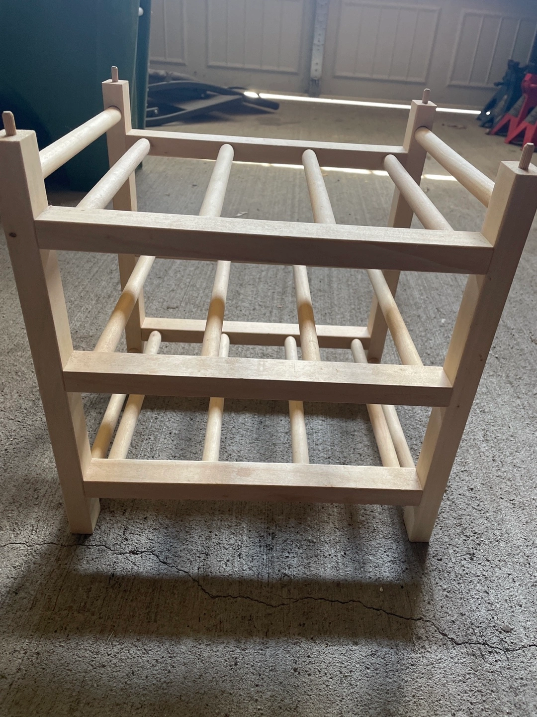 Selling a wooden wine rack. It's in great condition and ready to hold your favourite bottles of wine! It's a simple and functional design that would fit in any home