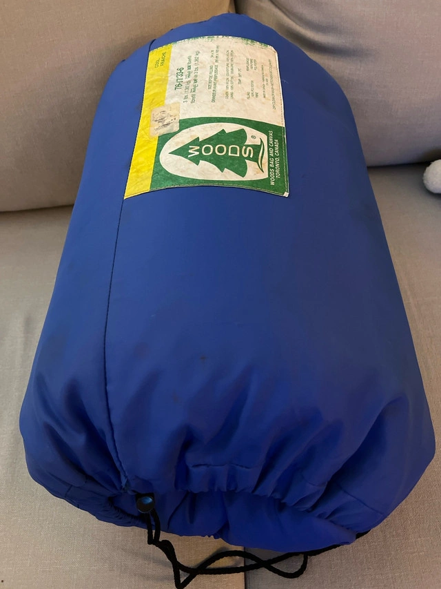 Get ready for a cozy night under the stars with this Woods sleeping bag! It's designed to keep you warm and comfortable, even when the temperature dips to 2 degrees Celsius. This bag features a durable nylon cover and a soft cotton lining, making it perfect for all your camping adventures. Here are some details about this fantastic sleeping bag: * Temperature Rating: 2°C / 35°F * Filling: 3 lbs (1.362 kg) Hollofil 808 fiberfill * Cover: 100% Nylon * Lining: 100% Cotton * Size Before Filling: 34 x 76 inches (86 cm x 193 cm) This sleeping bag has been on a few adventures, so it's in used condition. I am pricing it accordingly. If you're reading this, it's still available, so grab it before someone else does!