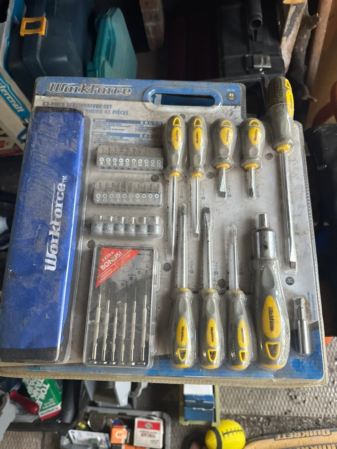Selling a WorkForce 43-piece screwdriver set. It includes a variety of screwdrivers and precision screwdrivers. Perfect for any DIY projects or repairs around the house!