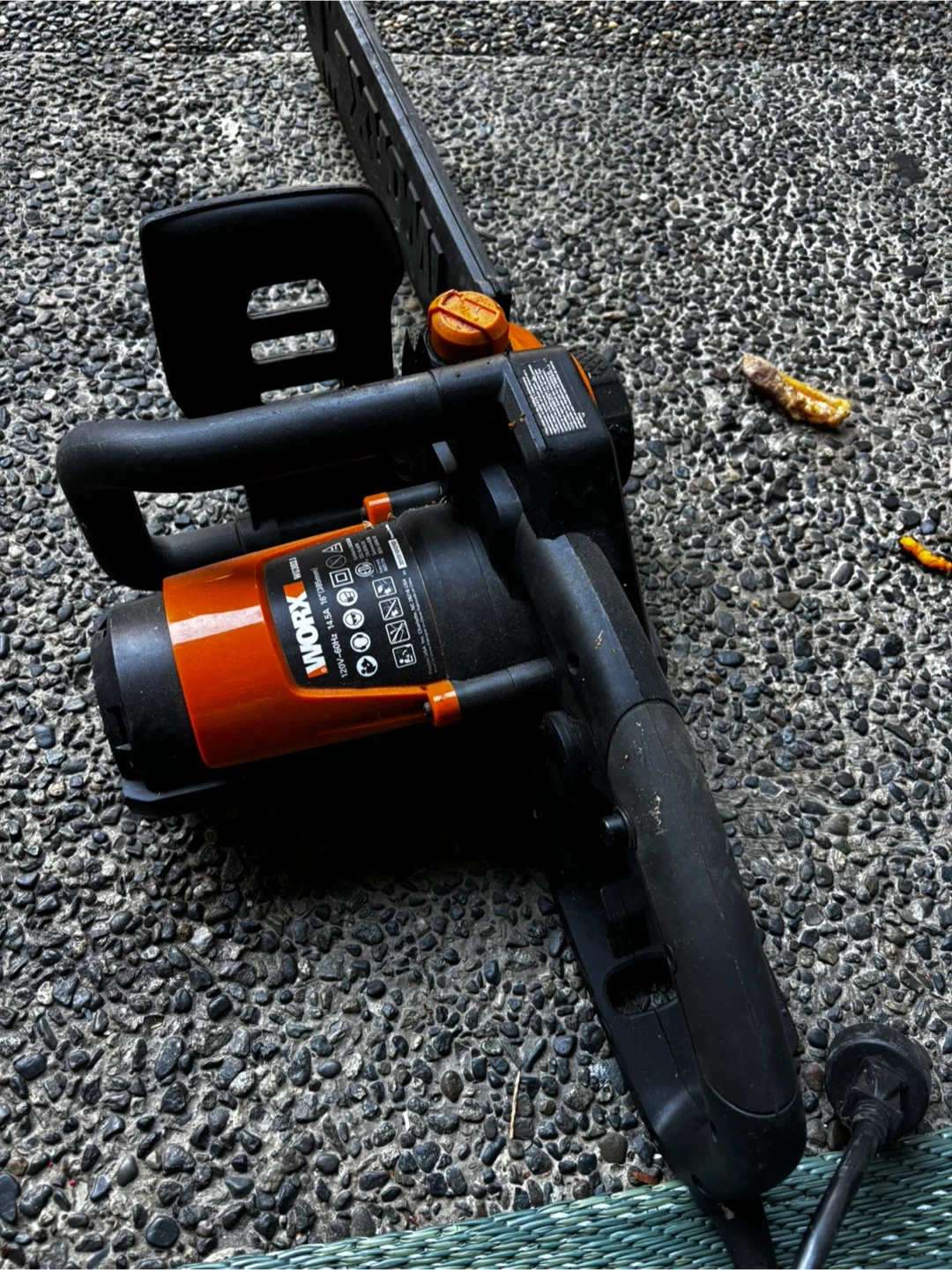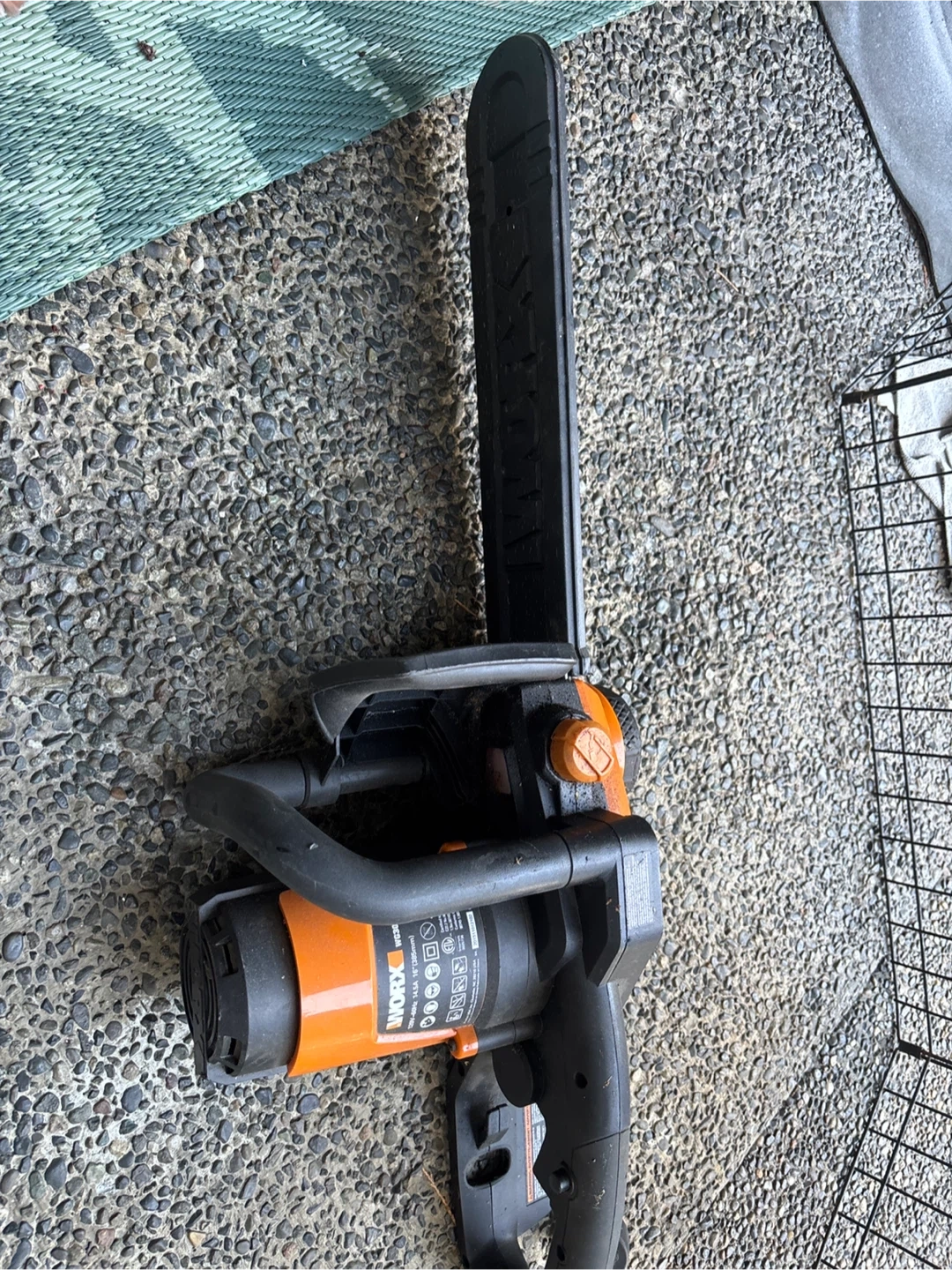 Selling a Worx WG303.1 electric chainsaw. It has a 16-inch (385mm) bar length. Perfect for yard work and small projects!