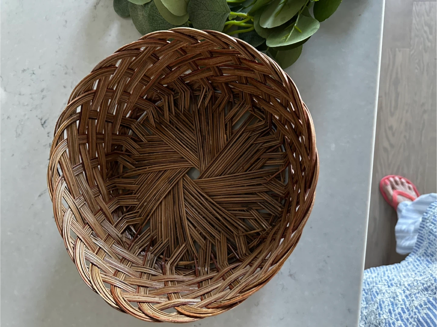 Selling a woven basket in brown. It's in great shape and perfect for storage or decor! The woven design adds a nice touch to any room