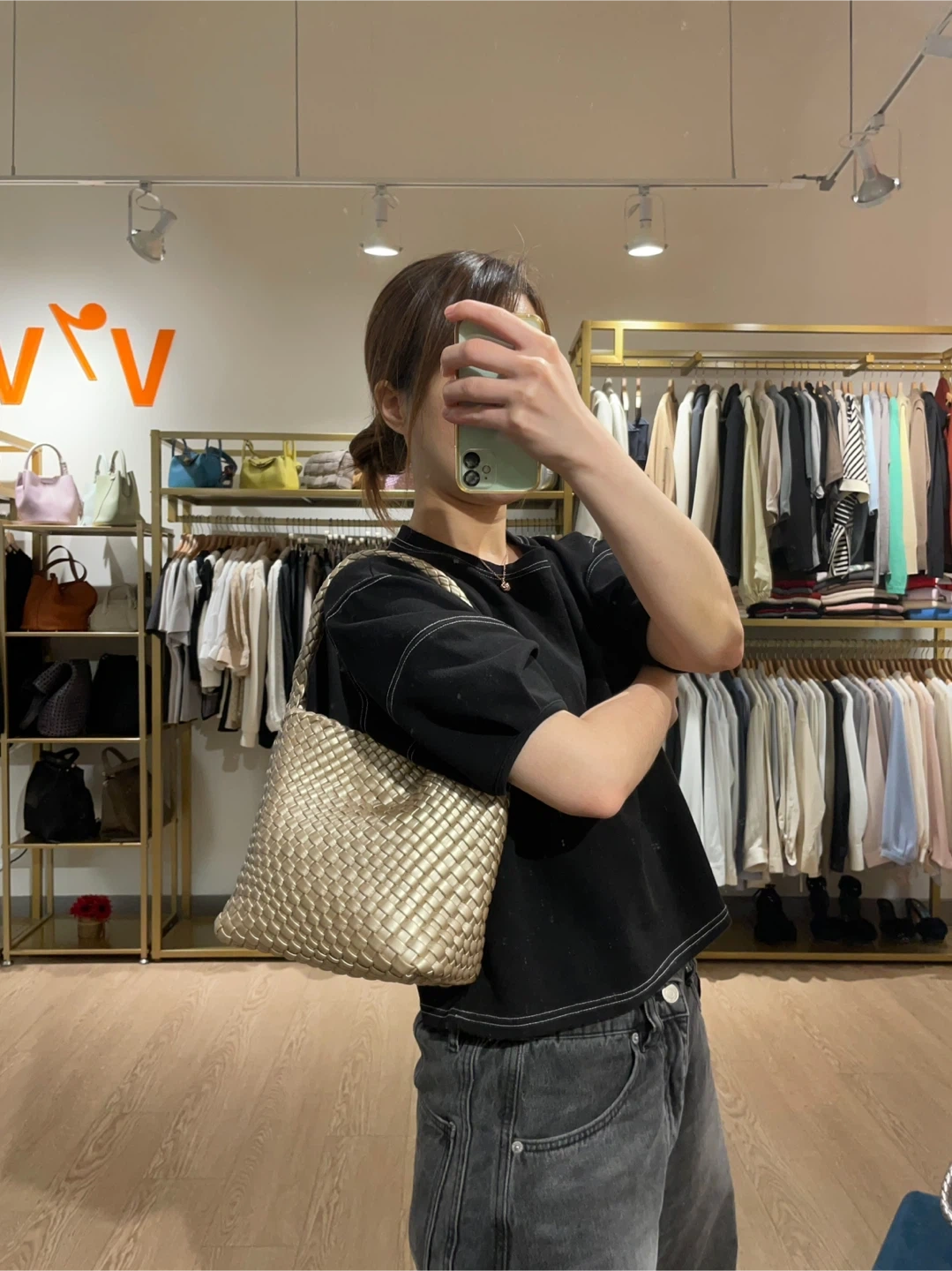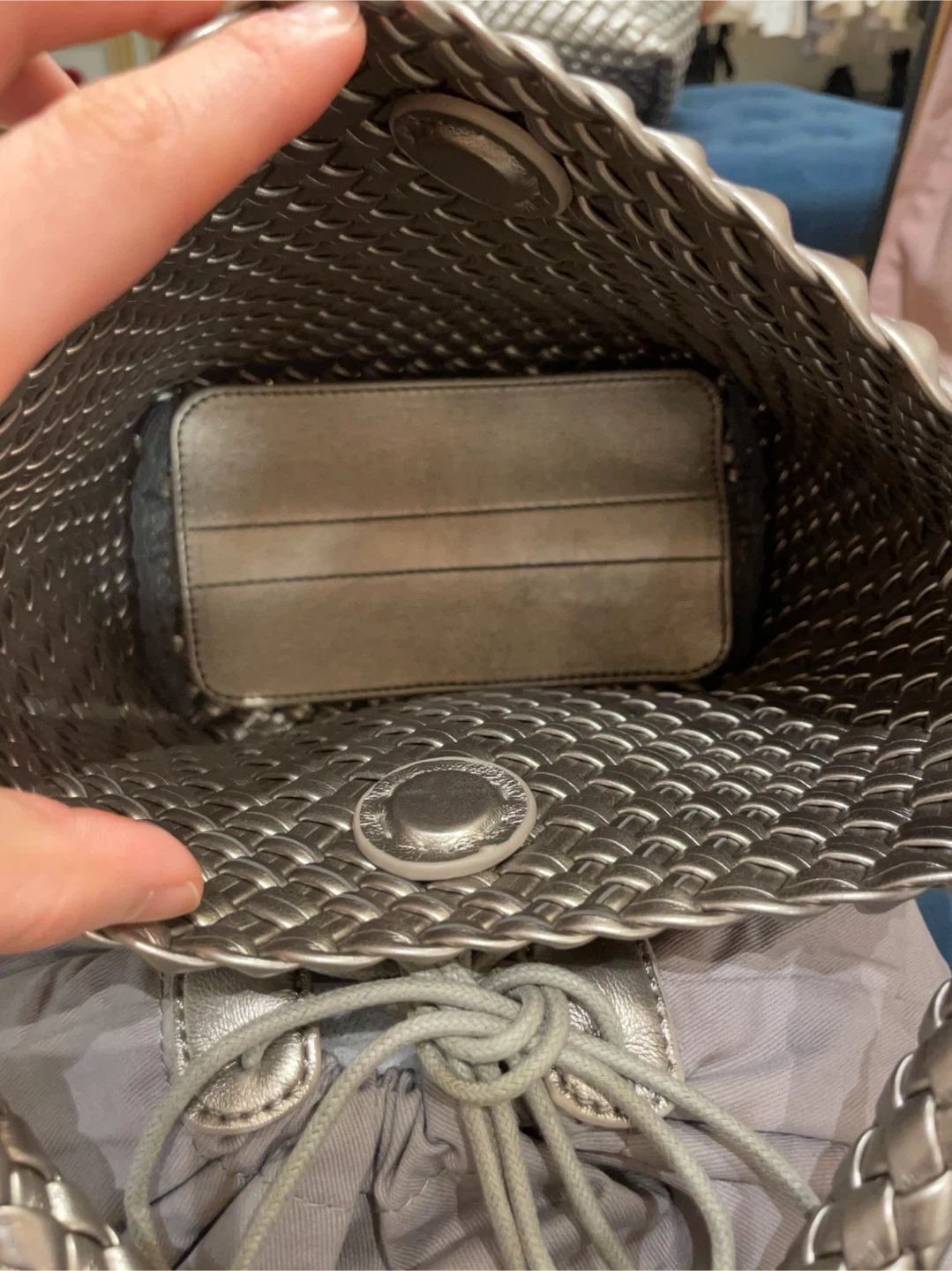 This is a stylish woven bag in a metallic silver or gold colour. It's a great size for everyday use and adds a touch of elegance to any outfit! The woven design is eye-catching and unique. It also comes with a dust bag. Bag Dimension: L30cm x H21cm x D14cm These are brand new items, price is $170each firm, pick up in Aberdeen Square Richmond, or Burnaby BCIT area.
