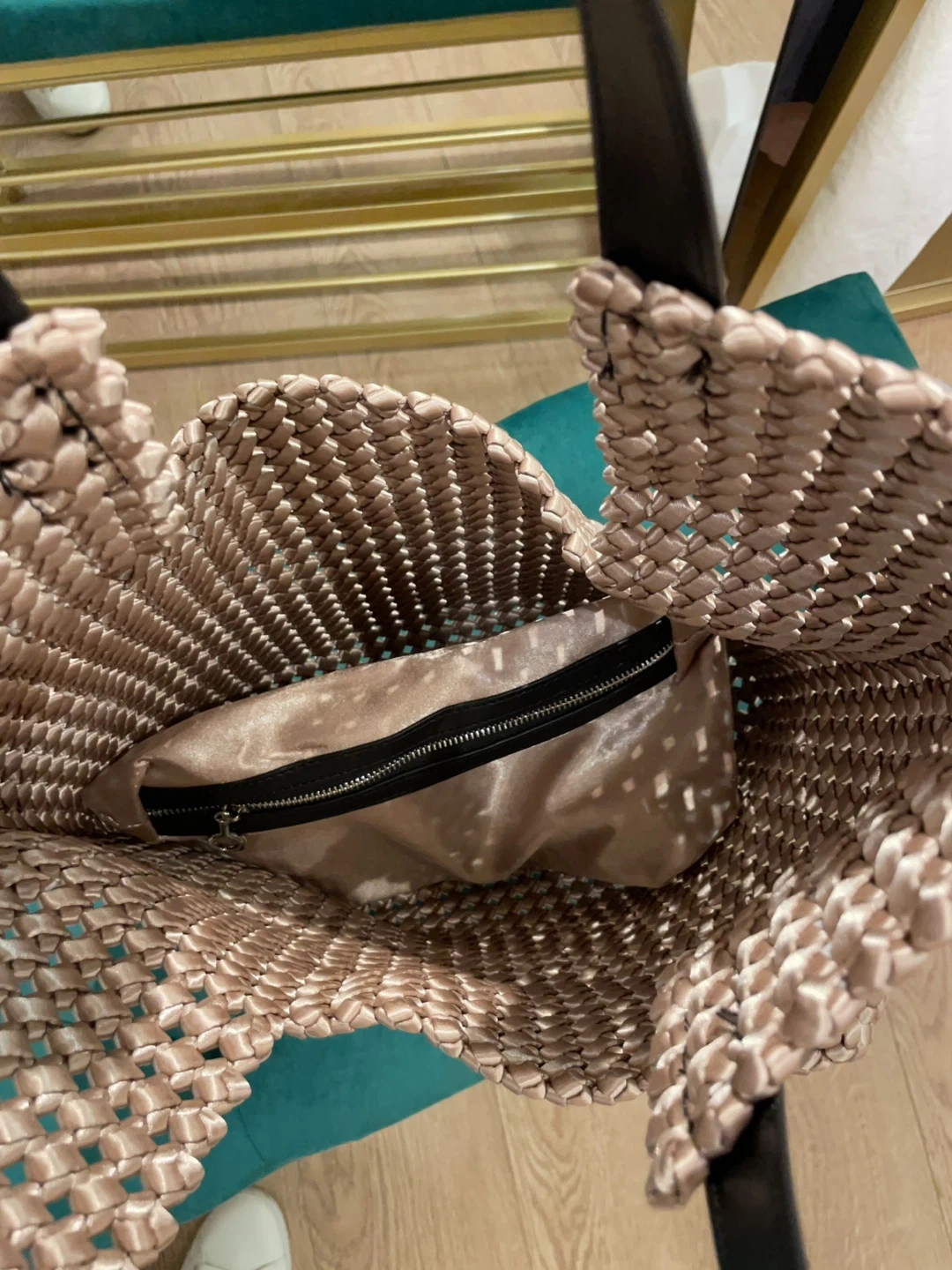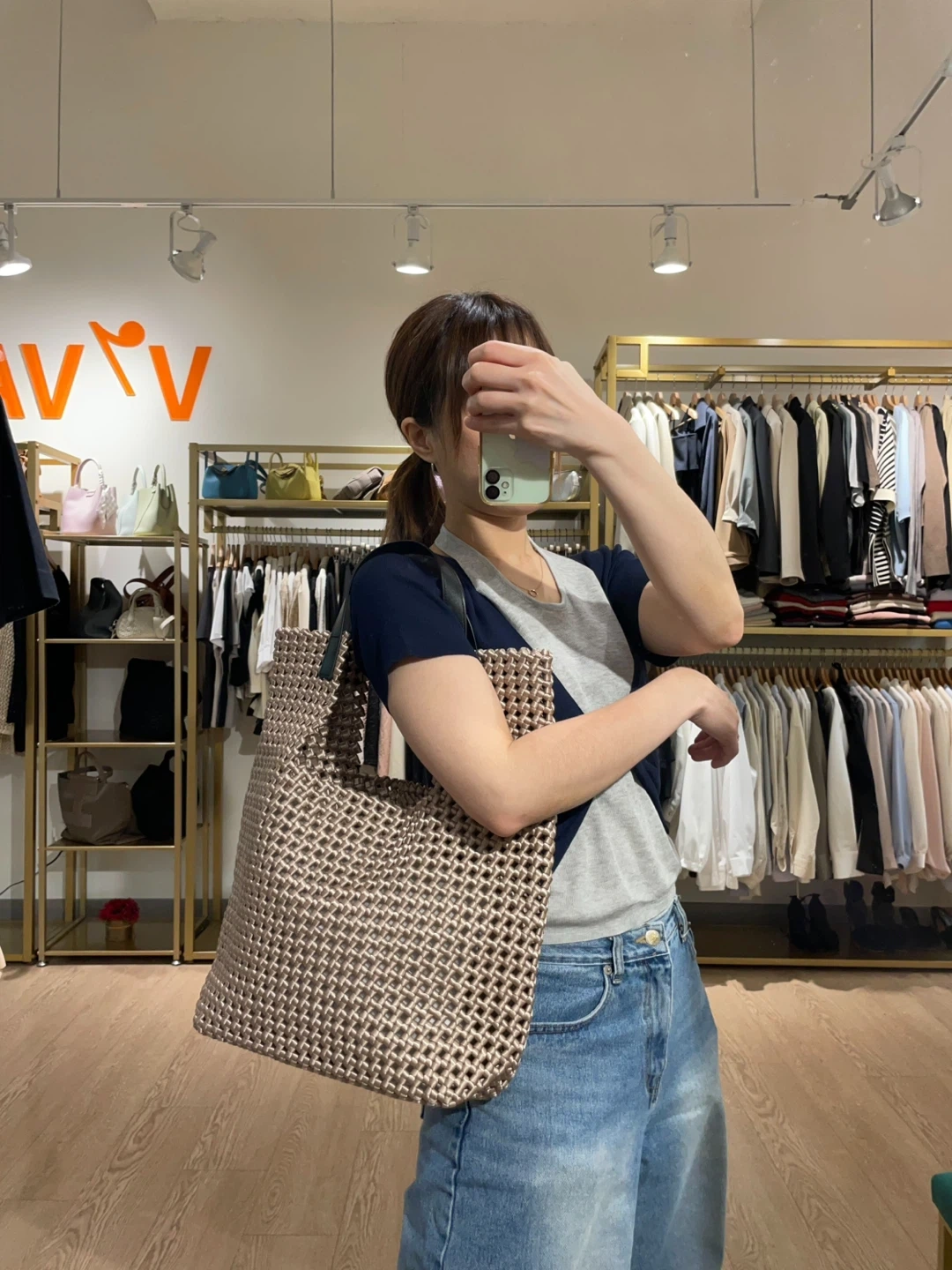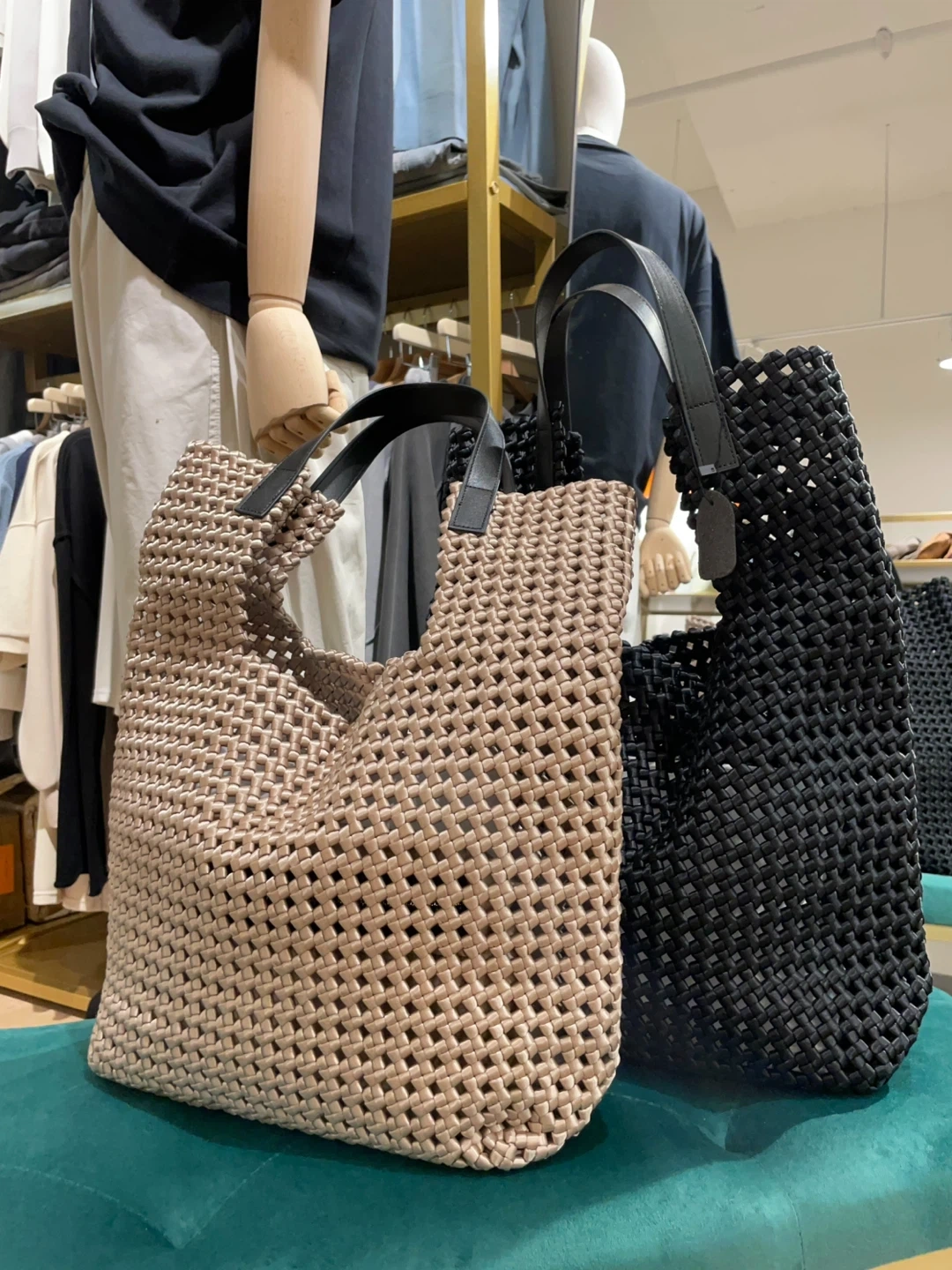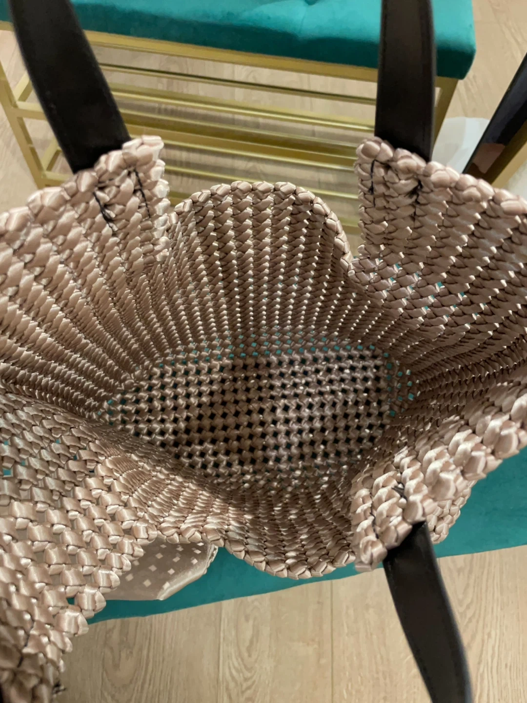 Selling a stylish woven tote bag! It comes with a matching pouch, perfect for keeping your essentials organized. The woven design gives it a unique and trendy look, great for everyday use or a day out shopping This is a brand new item sourced from Korea, price is firm, serious buyers only! Pick up in Richmond Aberdeen Square or Burnaby BCIT area Available in beige / dark grey / black Measurements: L42cm x H30cm (to middle dip) x D12cm Bag drop to rectangular cut out : 27cm