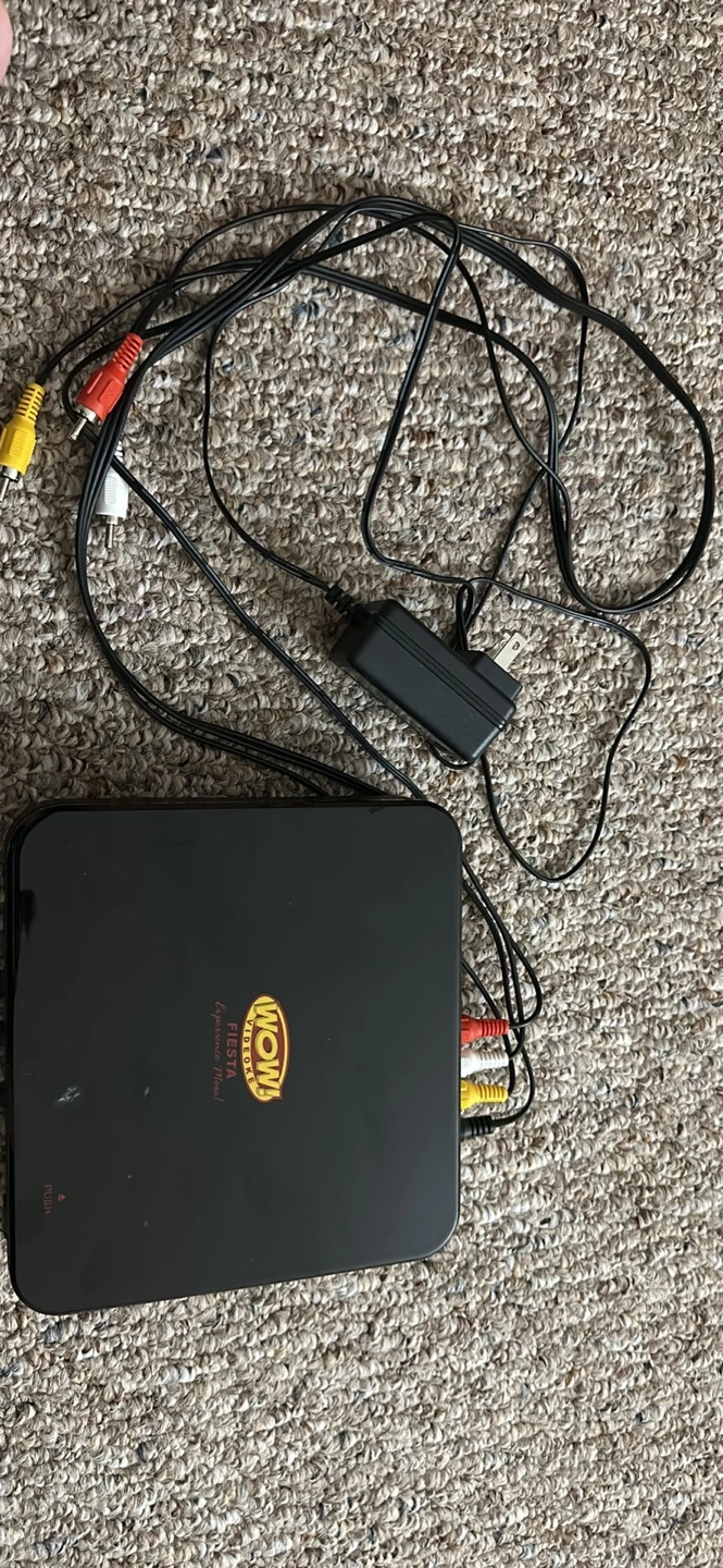 Wow Fiesta Videokaraoke player. Includes power adapter and AV cables.
