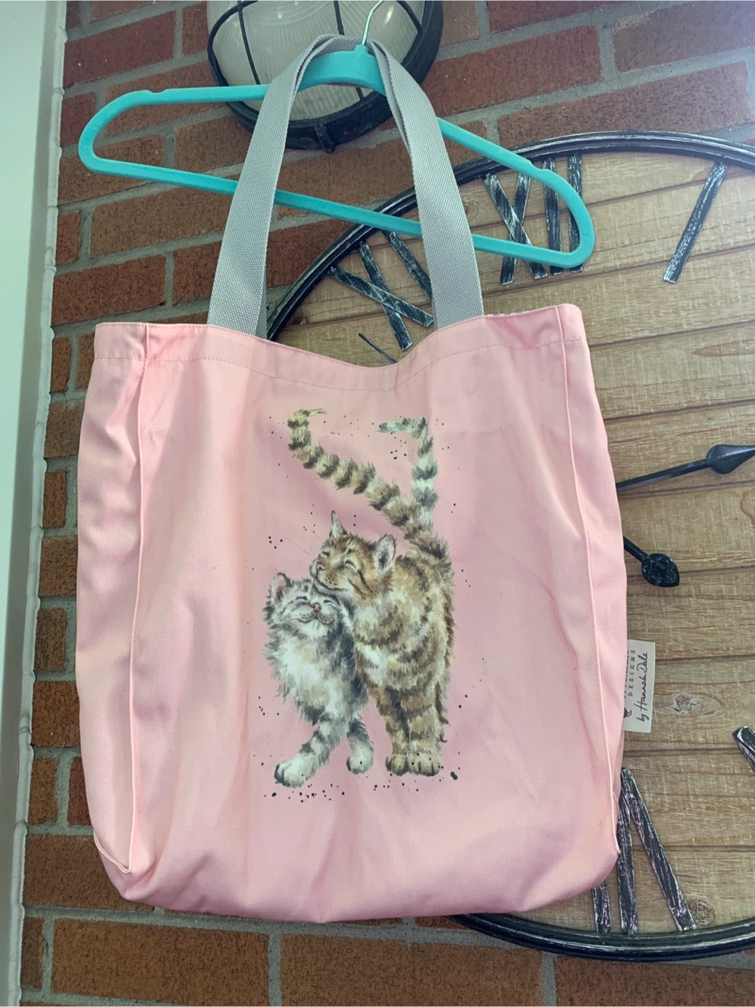 Hey cat lovers….Check out this adorable BNWT Wrendale Designs tote bag! 🐈It features a sweet watercolour illustration of two cats by Hannah Dale designed in England. The bag is pink on the outside and has a grey and white striped lining. The material is a sturdy canvas and the lining is 100% cotton. Perfect for carrying your everyday essentials, like books, shopping, gym clothes or for thrifting new treasures! Cash only please.