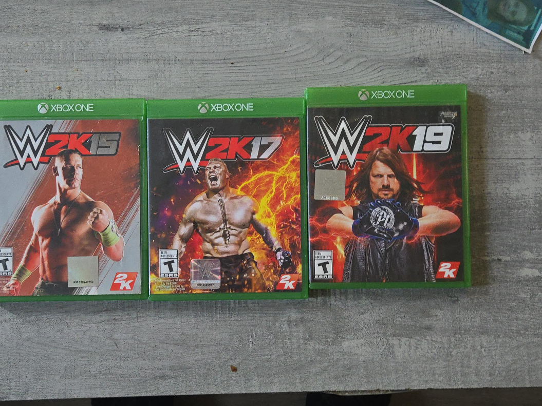 Selling three WWE 2K games for Xbox One: 2K15, 2K17, and 2K19 Rated T for Teen