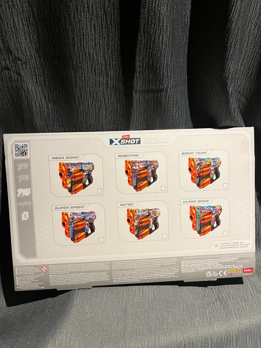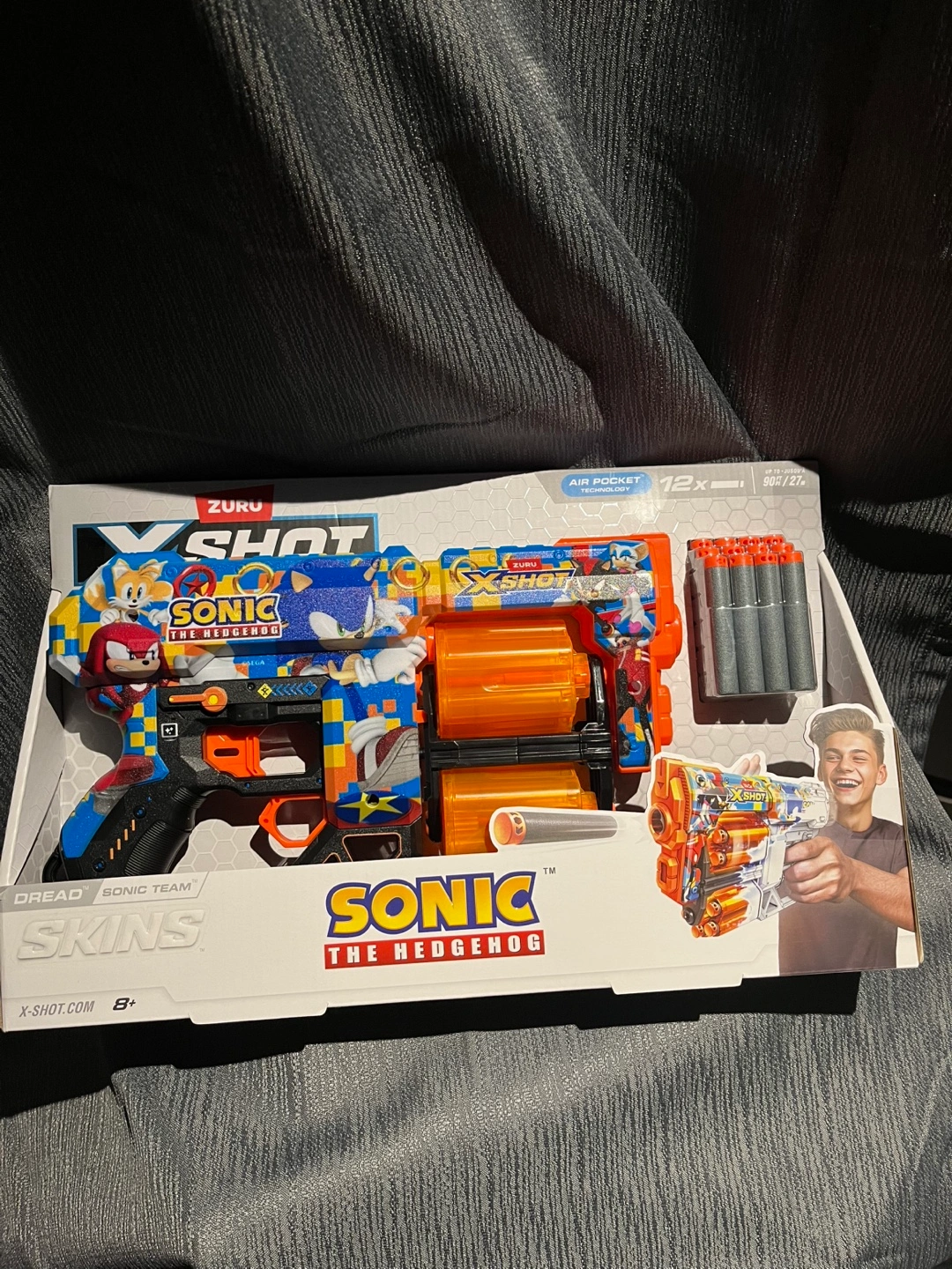 X-Shot Sonic The Hedgehog Blaster, includes 12 darts. Brand new in box.