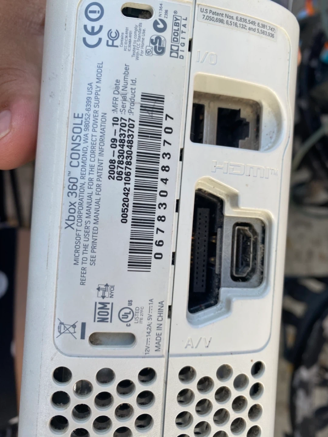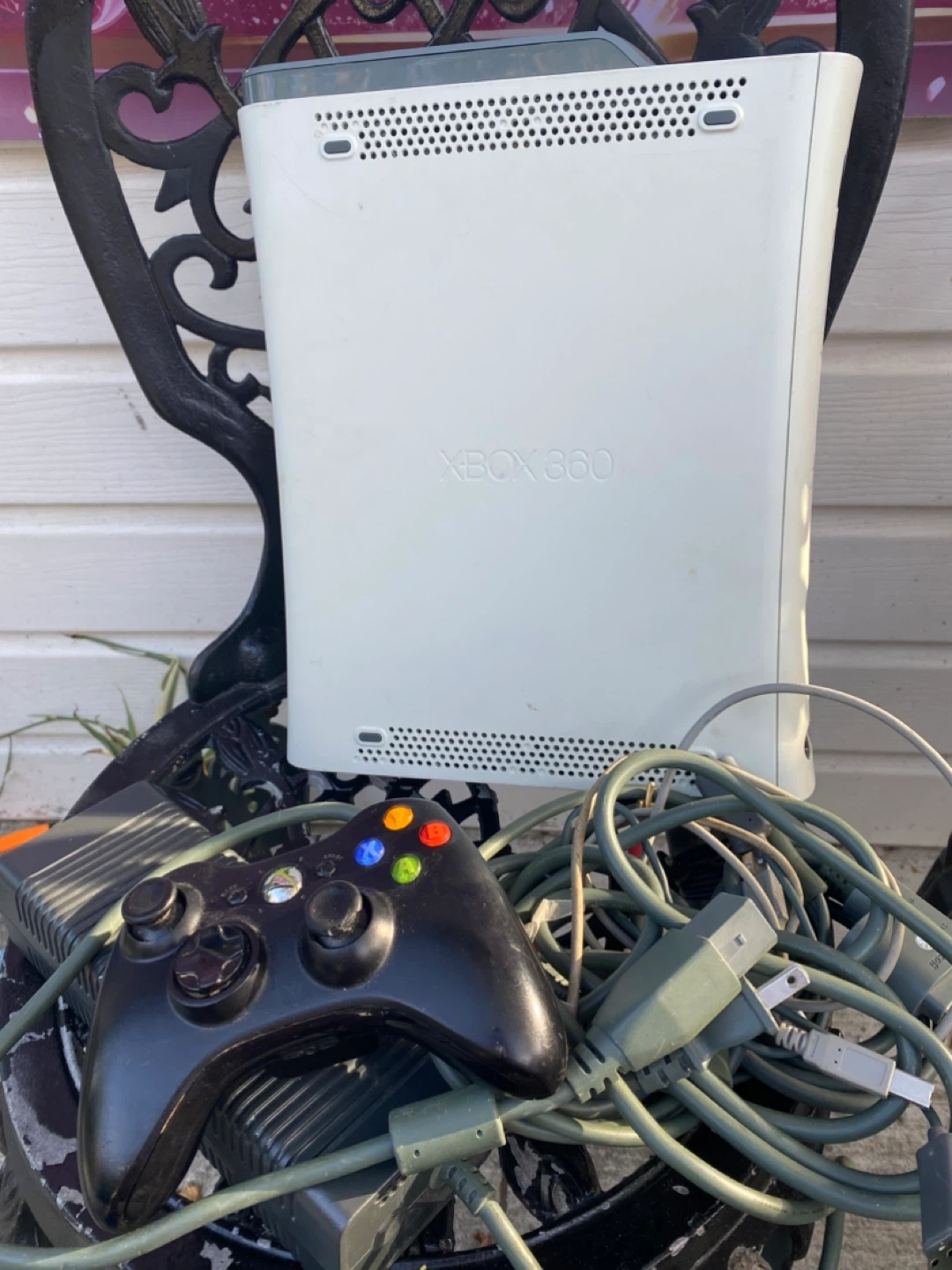 Selling an Xbox 360 console with a 60GB HDD. Includes a controller and the necessary cables. The manufacturing date on the console is 2008 September 10. Ready for some gaming fun!