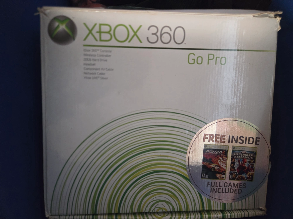 76warning with this specific Xbox is that it requires its original power cord which can be purchased in game stores that carry older systems. if incorrect power cord is used the machine can blow. Xbox 360 Go Pro Xbox itself is new. box is missing power cord & controller & go pro. hint - box adds value. pawn shop will buy for approx 20$ & up