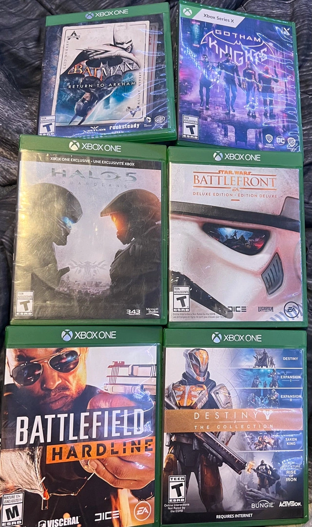 Batman return to Arkham Gotham knights Halo 5 Star Wars battlefront Battlefield hardline Destiny the collection Dying light Trials fusion Just cause 4 Watch dogs Avatar frontiers of pandora Guardians of the Galaxy For Sale By: Owner