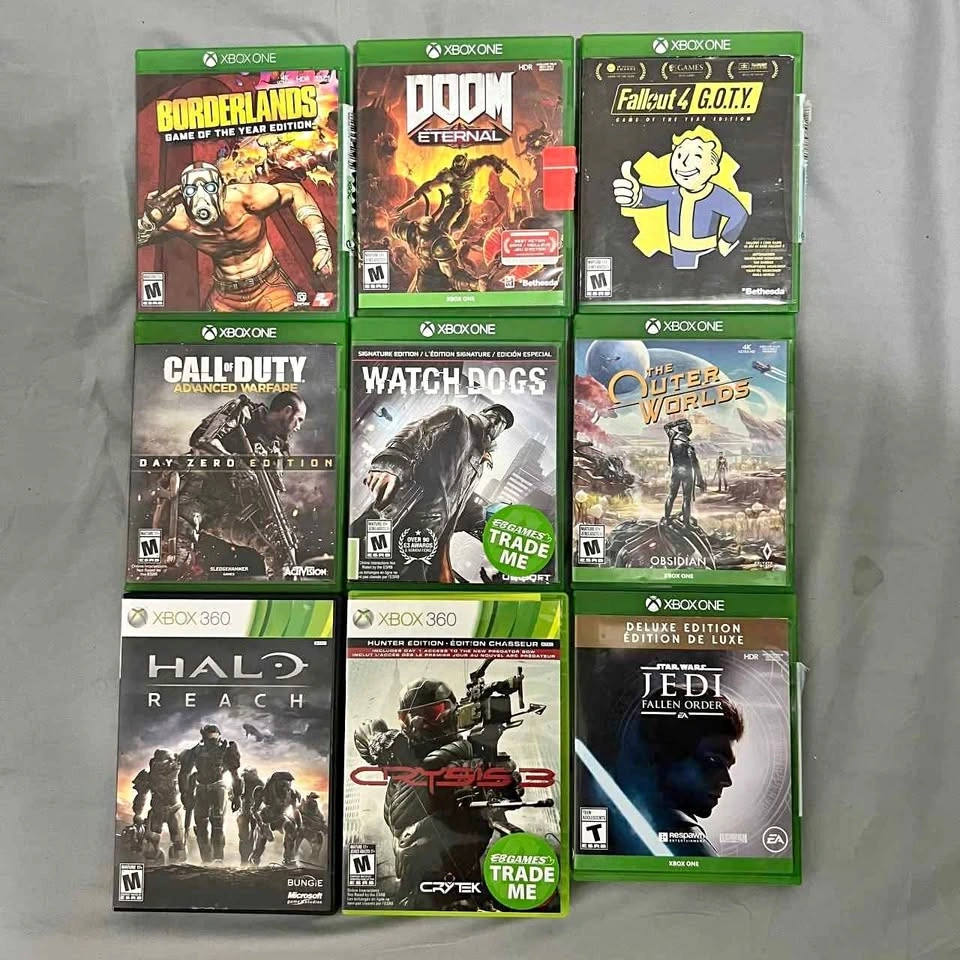 Games: • Doom Eternal 20$ • Fallout 4 GOTY 20$ • Borderlands GOTY $15 • Jedi Fallen Order Deluxe 15$ • COD Advanced Warfare Day-Zero Edition 15$ • Watchdogs Signature Edition 10$ • The Outer Worlds 10$ • Halo Reach 10$ • Crysis 3 Hunter Edition 10$ Better Deals The More You Buy, Win Win. 90$ For All! All working great, can test them on my Xbox and send you a vid, send msg. Other titles available too, Check my FB marketplace profile!