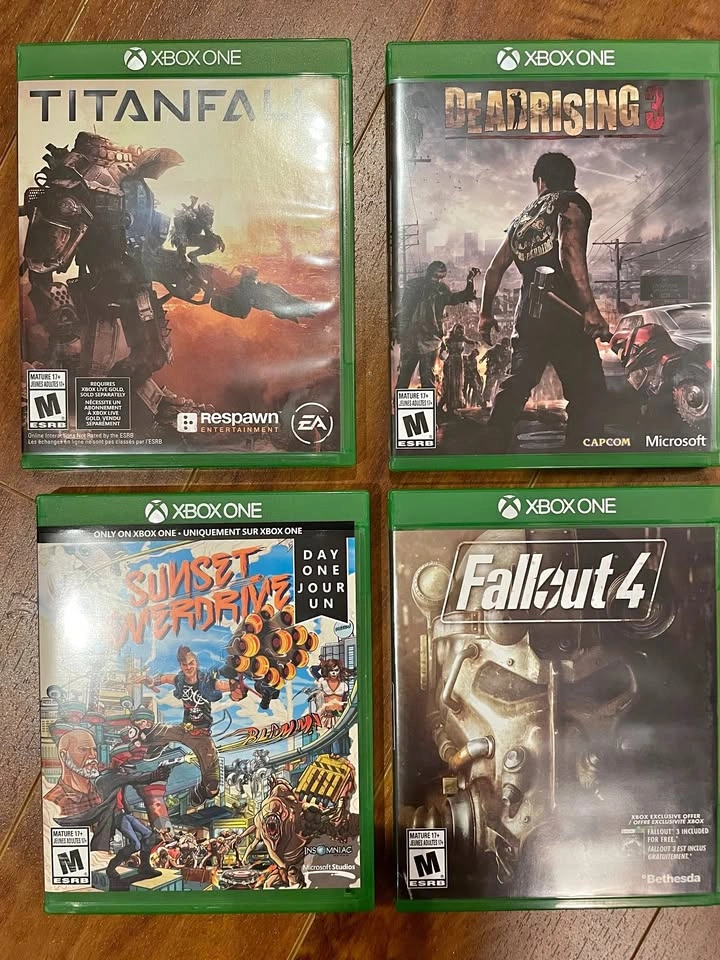 Perfect Condition, CIB $50 for the set. - Titanfall - Dead Rising 3 - Sunset Overdrive - Fallout 4 Pick-up in Oakville. Just North of QEW off Bronte. (check out my other Video Game and collectable listings. I’ll be posting more soon.)