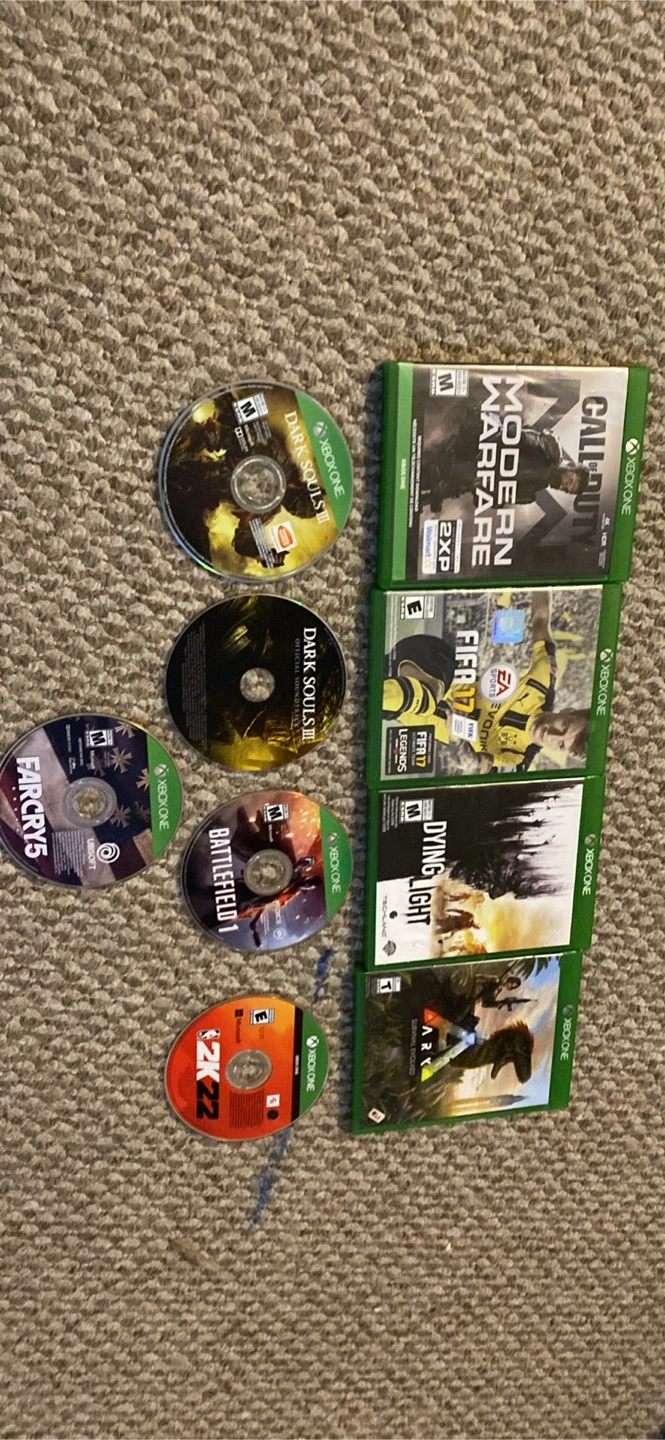 Selling Xbox one s with its cord one controller and 10 different games 1 TB