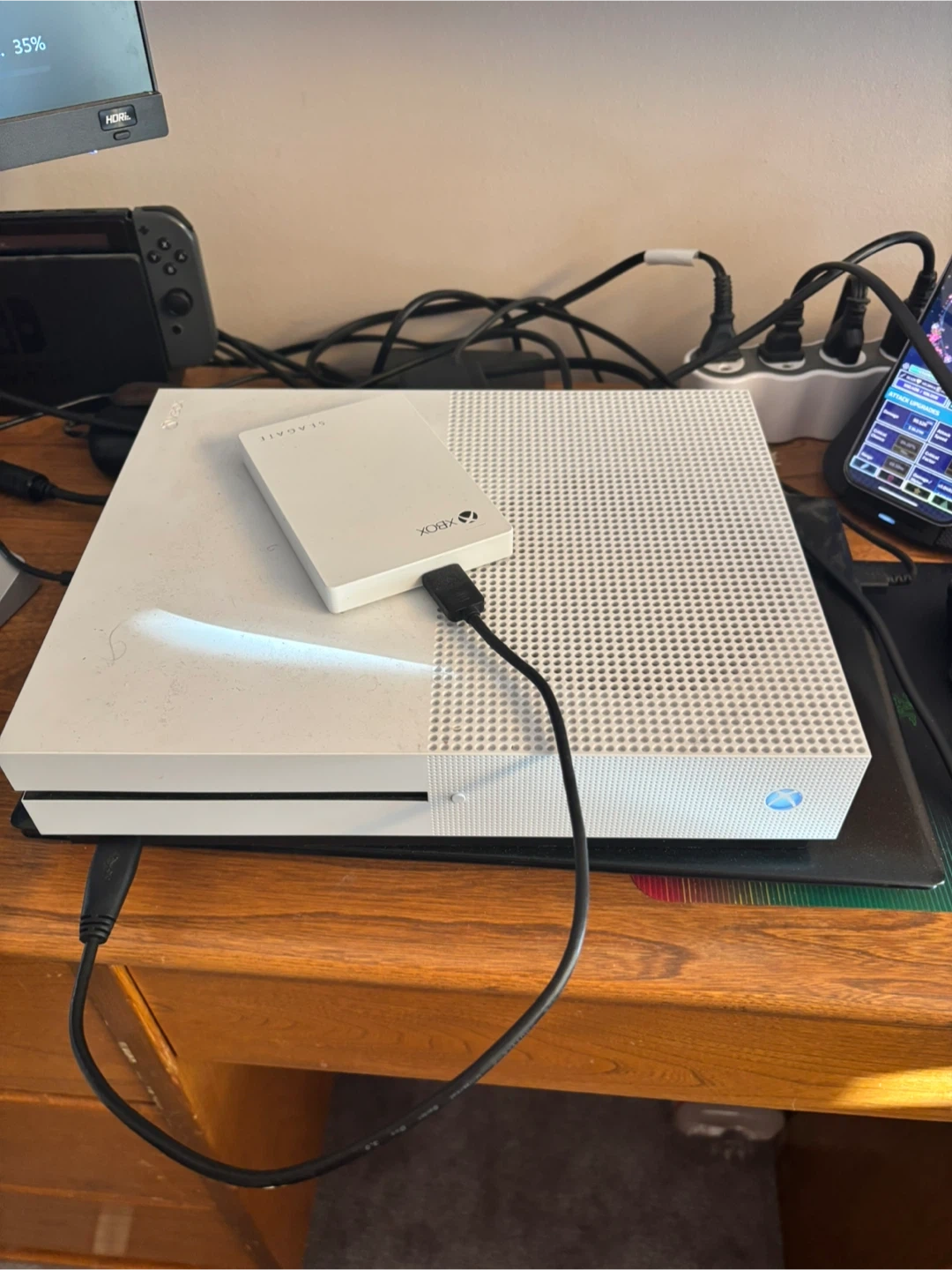 Xbox one S, 2TB storage drive and controller Willing to negotiate price -used no problems with the console -controller has no backing but batteries stay in while in use
