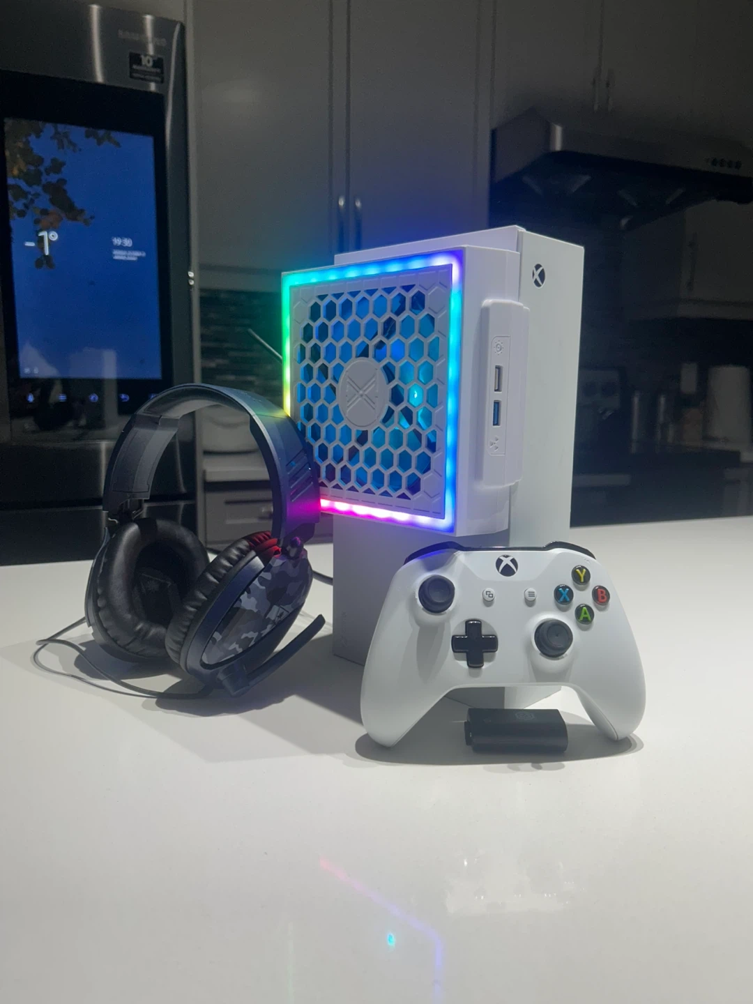 Selling my Xbox Series S! It comes with a cooling fan with RGB lights, a USB hub, and a controller. Everything is in great shape and ready for a new home. Perfect for gaming!