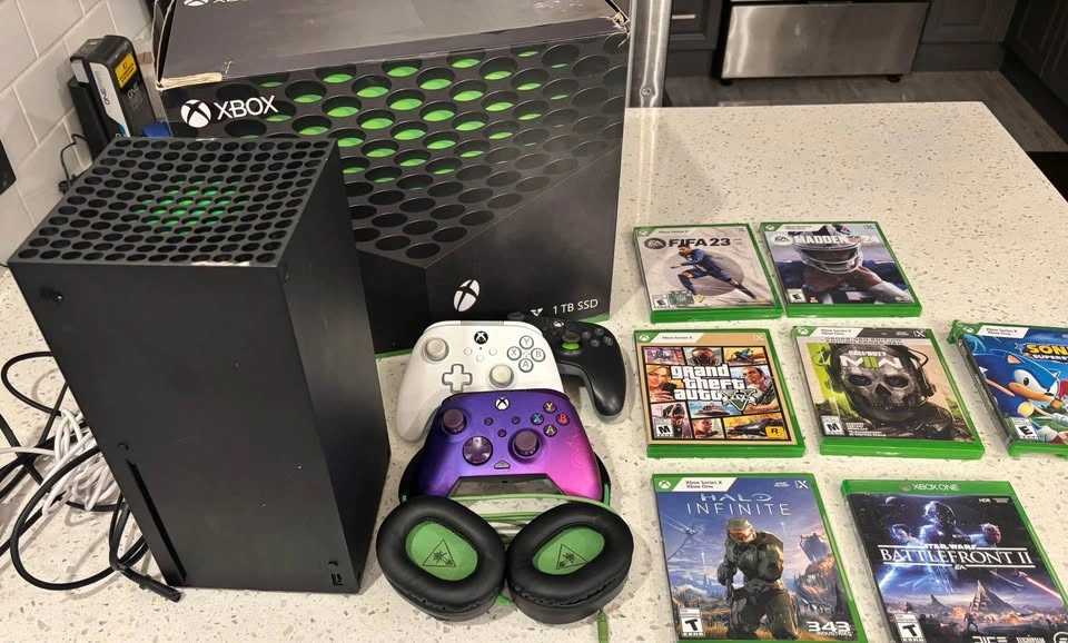 Selling my Xbox Series X console in like-new condition. Barely used and works perfectly. Includes: 🎮 Xbox Series X 1TB console (original box + power cable) 🎮 3 wired controllers 🎮 A collection of top games GTA 5 Halo infinite Call of duty, modern warfare 2 Madden 24 Sonic superstars Battlefront 2 FIFA 23 Smoke-free home. Everything is clean and fully tested—ready to plug in and play. Controllers all work perfectly. No scratches or damage, runs whisper-quiet. Asking: $700 or (best reasonable offer) Message me to arrange a time or for more details. Will consider a trade towards a new E bike