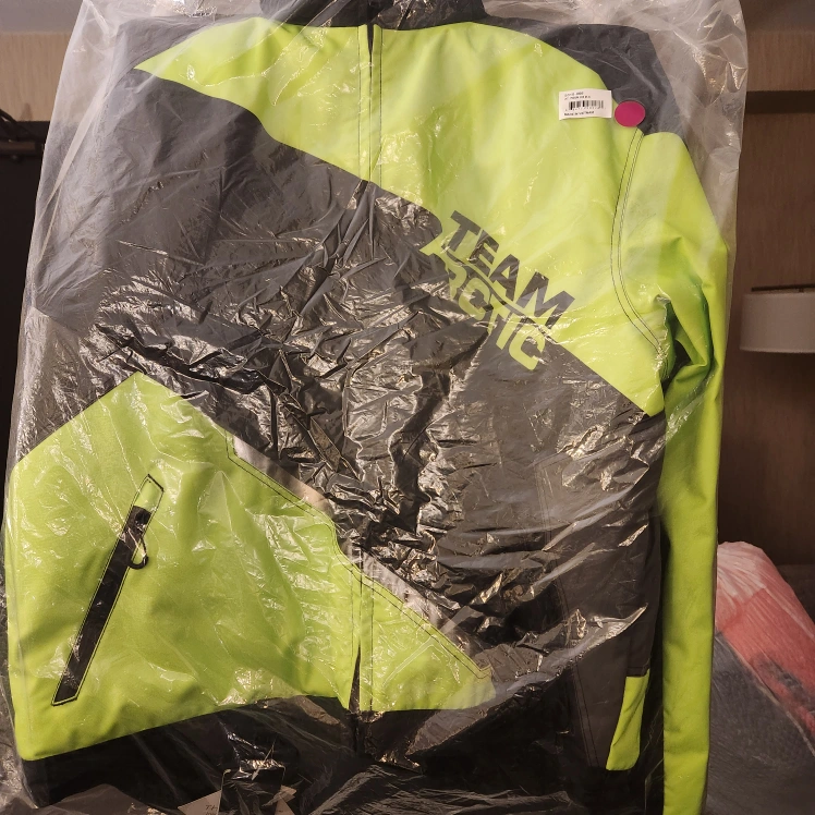 Selling an Arctic Cat Team Arctic jacket. It features a striking design with neon green and black panels. Great for staying visible and stylish on the snow! Perfect for any Arctic Cat enthusiast