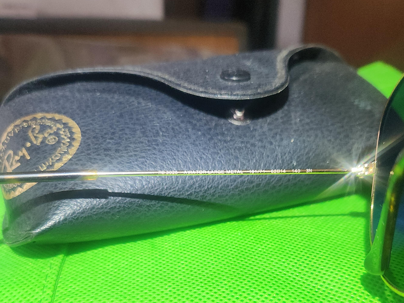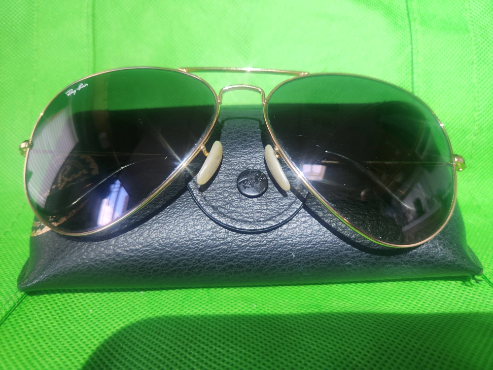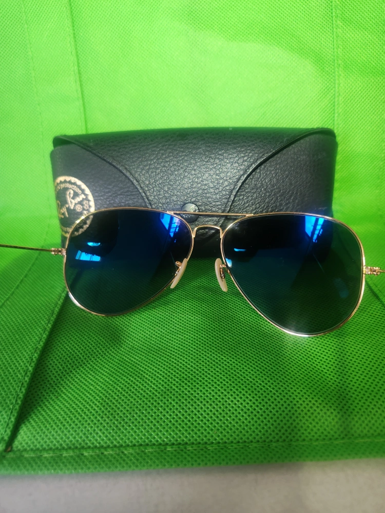 Selling a pair of classic Ray-Ban Aviator sunglasses. They feature a gold frame and the model number is RB3025 181/71 size 62[]14 140 3N. Comes with the original case!