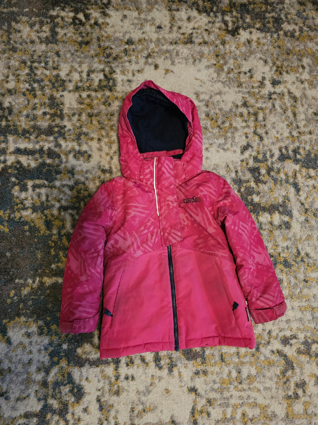 A cute and warm pink winter jacket for kids! This XMTN jacket is perfect for keeping your little one cozy during the colder months. It features a hood and a stylish design. size 5 kids