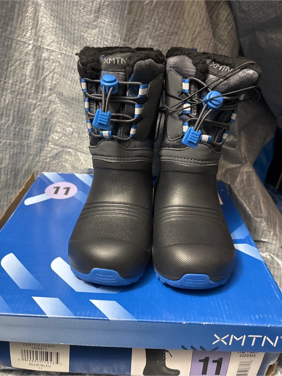 Keep your little one's feet warm and dry with these XMTN winter boots! They're a size 11 and feature a stylish blue and black design. Perfect for snowy days and outdoor adventures