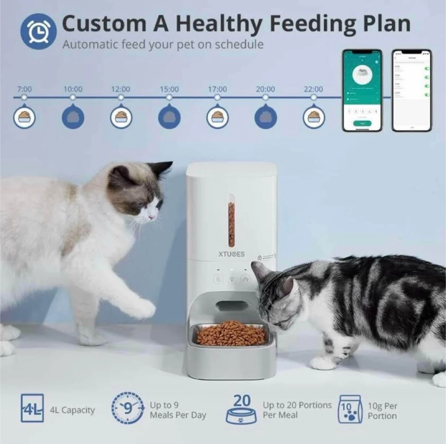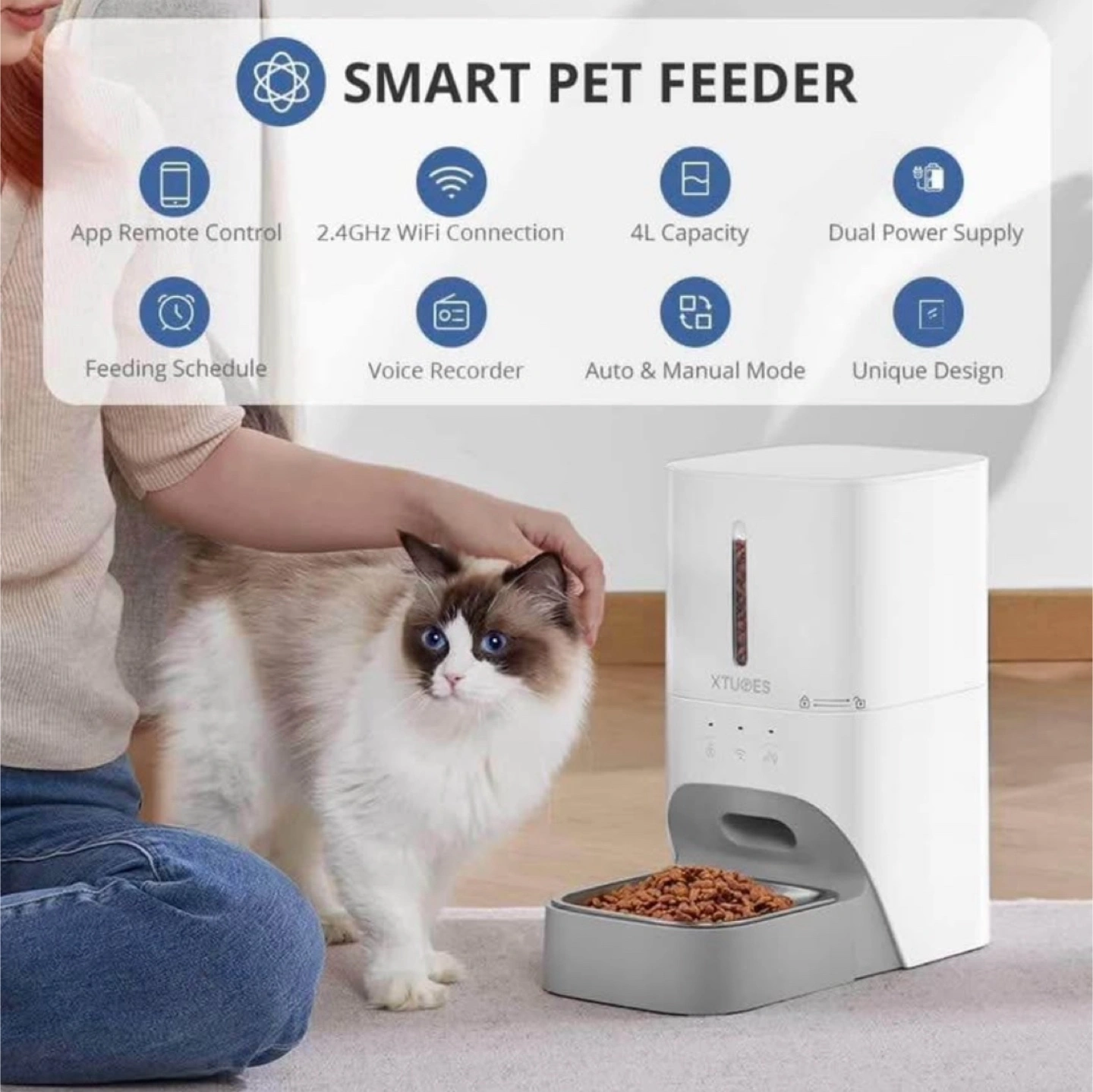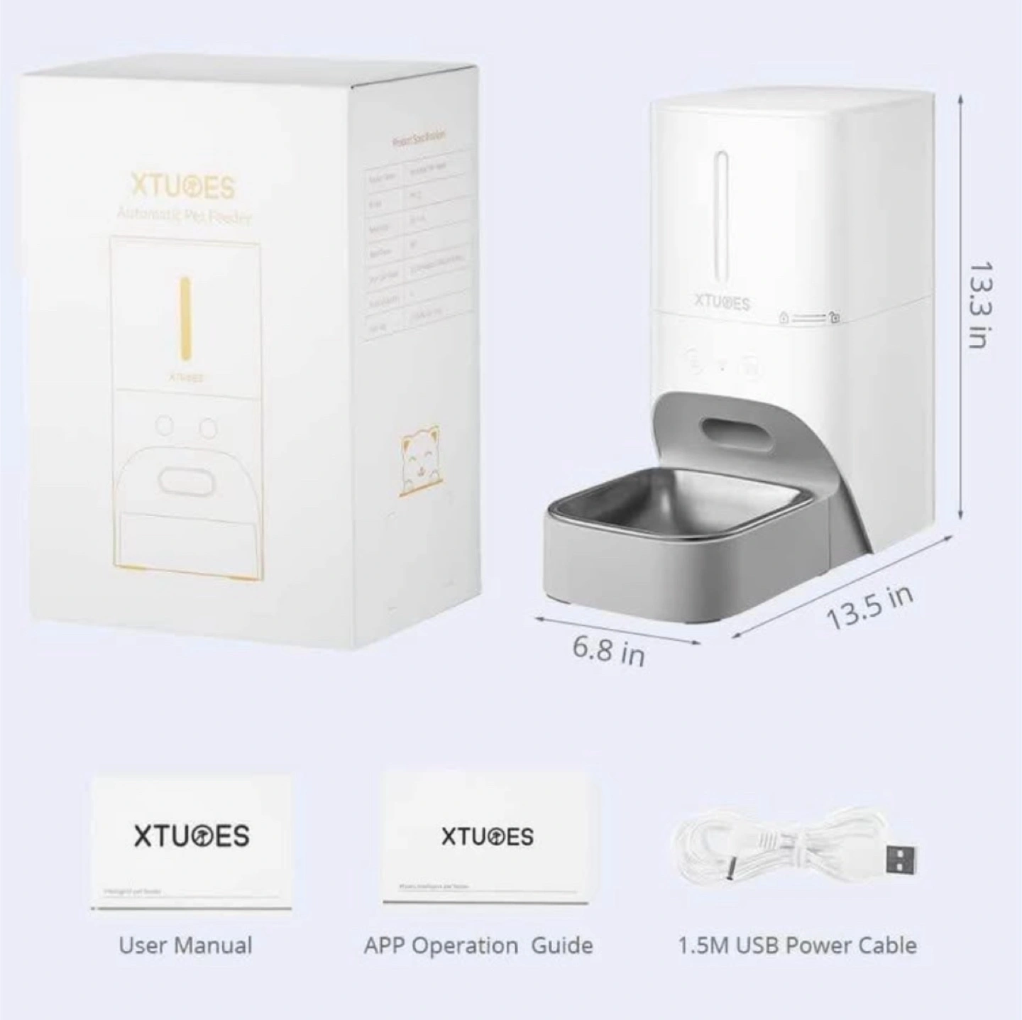 I'm selling an XTUDES Automatic Pet Feeder! It's in great condition and comes with the original box. XTUOES Automatic Cat Feeder - White colour. Suitable for Small/Medium Dog Cat. 2.4G WiFi 4L Detachable and Easy to Clean Pet Dry Food Dispenser with Stainless Steel Bowl & Lock Lid, Smart. Purchased for $100 + tax. Selling for $80. Used twice and no longer needed as I don’t have a cat anymore. 🐈(No lag and Precise Feeding) - No Food Caton and precise feeding. The thickened silicone food distribution sheet has a stronger thrust and not easy to break, and the food distribution is smoother.Consistent with network real-time time,more precise. 🐈(Detachable and Easy to Clean) - Detachable design automatic cat feeder makes cleaning easier and more convenient. Rejects food residues and odors, allowing your pets to enjoy healthier food! Healthy is everything!!! 🐈(Regular and Healthy Diet) - The feeder is only suitable for 2-15MM(0.07-0.6inch)DRY PET FOOD. Provide pets on a schedule of up to 10 meals, up to 20 portions per meals. Approximately 8-10 grams each portions. You can create a personalized meal plan for your pet to prevent your pet from overeating. 🐈(Recording function) - 30 personalized recording function, call your pet when food is distributed. Your voice can give pets a sense of security, let them eat with peace of mind, and make pets feel that their owners are around! (EX: hey boy, come here, it's time to eat!) 🐈(Dual Power Supply Methods) - The automatic cat feeder has dual power. Powered by 5V DC USB power cable and 3 alkaline D-size batteries (not in cluded). In the event of a sudden power outage, the automatic cat feeder continues to operate on the battery. Make sure your pet continues to get food.