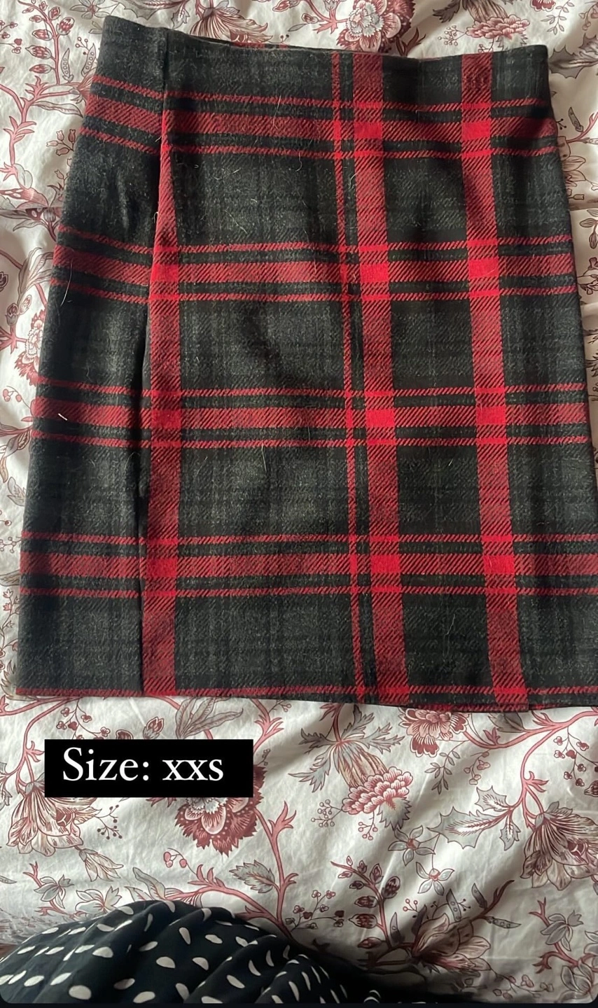 Women's mini skirt. Red and black plaid pattern. Size XXS. Woven fabric. PM for more detailed images / information. Will be donated at the end of May. 🪻Pay what you can🪻