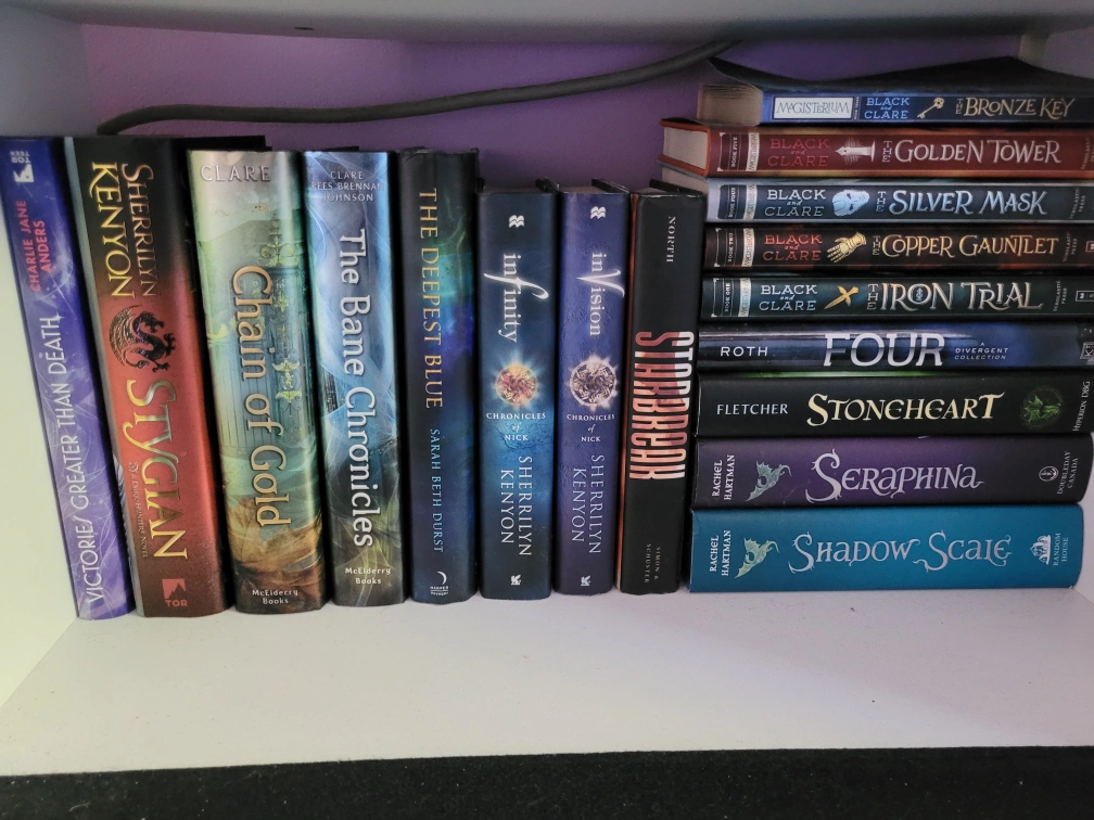 The novels are in excellent condition unless stated otherwise. I am open to negotiate a price if buying a bundle (6 or more books). Hardcover: Spiderwick Chronicles The Completely Fantastical Edition-$25 The 5th Wave-$15 The Queen of Sorrow-$15 Victories Greater Than Death-$20 Stygian-$20 Chain of Gold-$25 The Bane Chronicles-$20 The Deepest Blue-$10 Infinity-$15 Invision-$25 Starbreak-$15 Shadow Scale and Seraphina-$20 each Stoneheart-$15 Four: A Divergent Collection-$20 Acid-$10 The In-Between-$10 Rea and the Blood of the Nectar and Clues to the Universe-$10 each Catch and kill-$30 Magisterium Series: books 1, 2, 4, 5 are $15 each, book 3 is $5. Or buy all for $55 Paperback: Bad girls don't die-$5 Kinslayer and Stormdancer-$10 each Sapphique-$5 The one and only Ivan and Crenshaw-$5 each The Capture-$5 Delirium-$5 The Darkest Minds-$5 Daughter of Smoke and Bone-$10 Eon-$10 Throne of Glass-$10 Graceling-$10 The Knife of Never Letting Go-$5 Dorothy Must Die-$10 Ready Player One-$15 Outlander-$15 Lirael-$5 The Girl of Fire and Thorns-$5 Otherwood-$5 The Winner's Curse-$10 Cress-$5 (plastic on the spine is a little wonky but overall great condition) People We Meet on Vacation-$5 (cover is a bit rough but no internal damage aside from light annotations in pencil) Eragon-$5 Asha and the Spirit Bird, All the Impossible Things, The Unadoptables-$5 each Make a Christmas Wish and The Secret Deep-$5 each Inheritance games-$10 All the light we cannot see-$5 (cover and spine are a a little worn but is still good) The nightingale-$20 Legends and lattes-$5 (slight water damage at the top of book but still good)