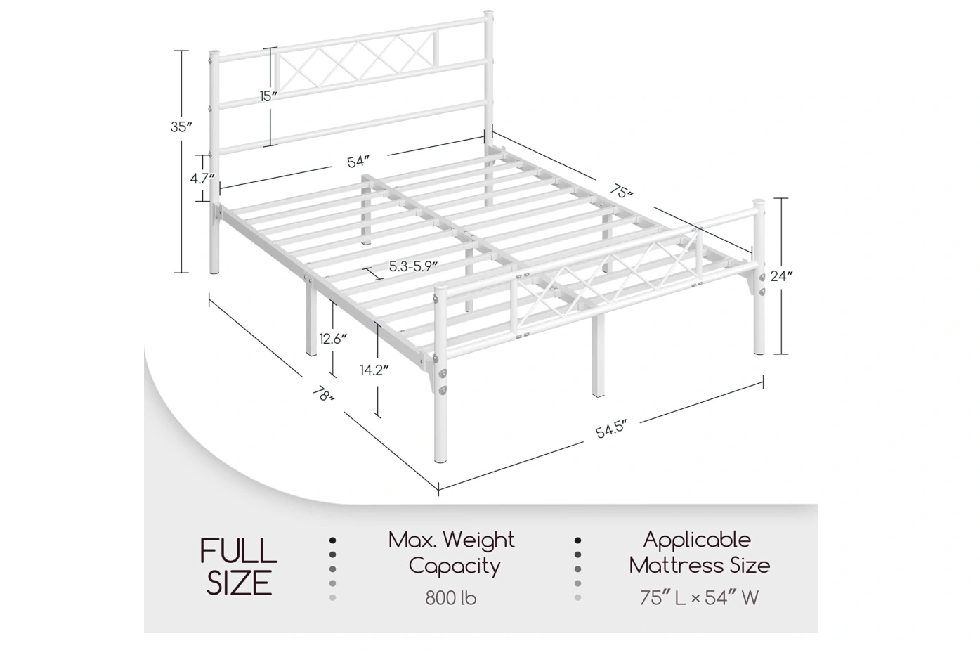 Full/Double Bed Frame + Gel Memory Foam Mattress
