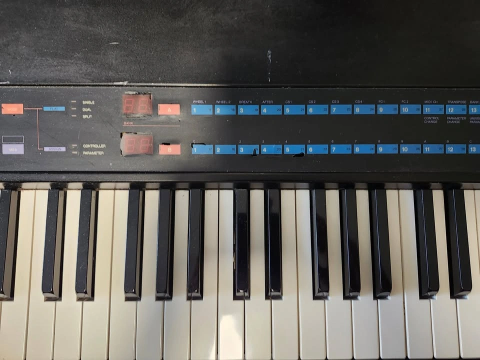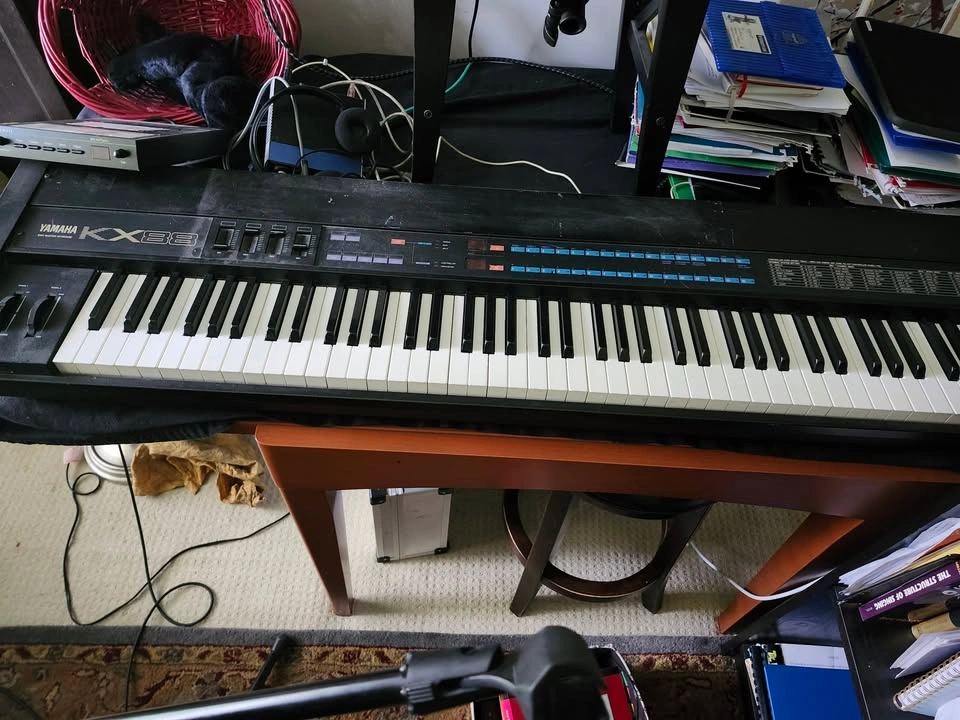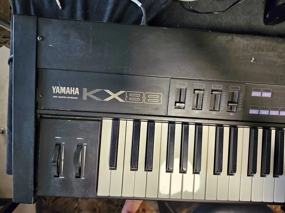 88 noted, weighted hammer-action keyboard controller. Maybe the best weighted keyboard ever made. Originally made in the 80s, and built like nothing else since. It has steel construction and weighs close to 50 lbs. Still in great working condition. There are some scuffs and scratches on the casing, and a few cracks in the plastic membranes, but the keys are all in excellent shape, both cosmetically and mechanically. Yamaha’s KX88 set the global standard for master keyboards for controlling numerous MIDI tone generators, which were in high demand after the onset of MIDI protocol. The KX88 features an 88-key piano-touch keyboard, and single, dual and split modes for controlling A/B 2 series MIDI data. Over 30 years later, this master keyboard still has many devoted users.