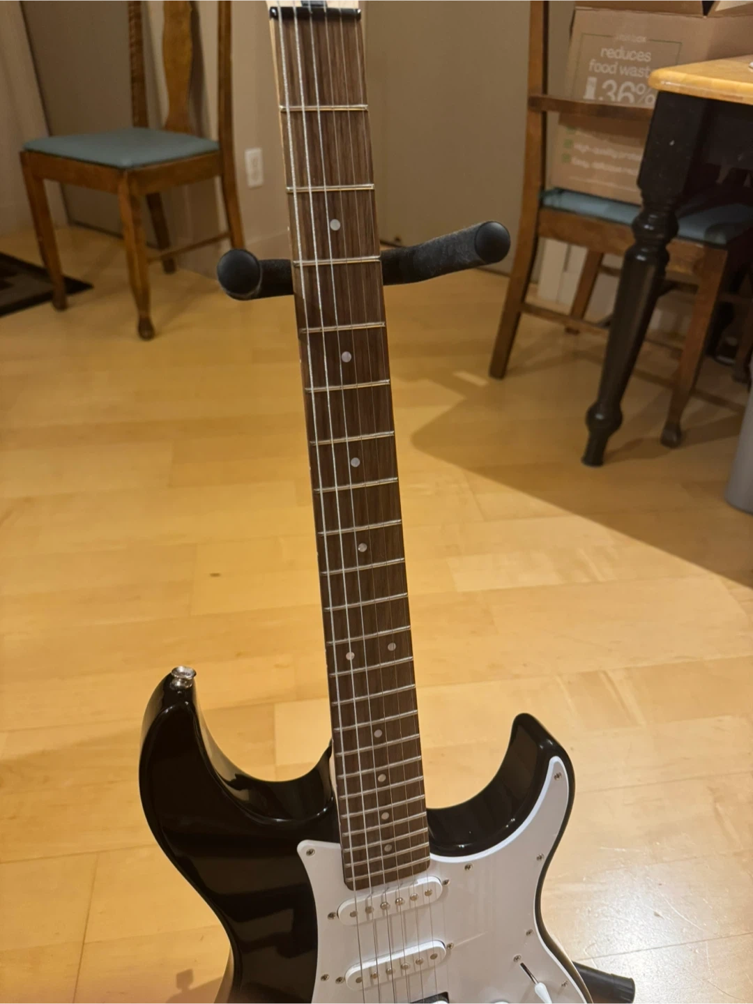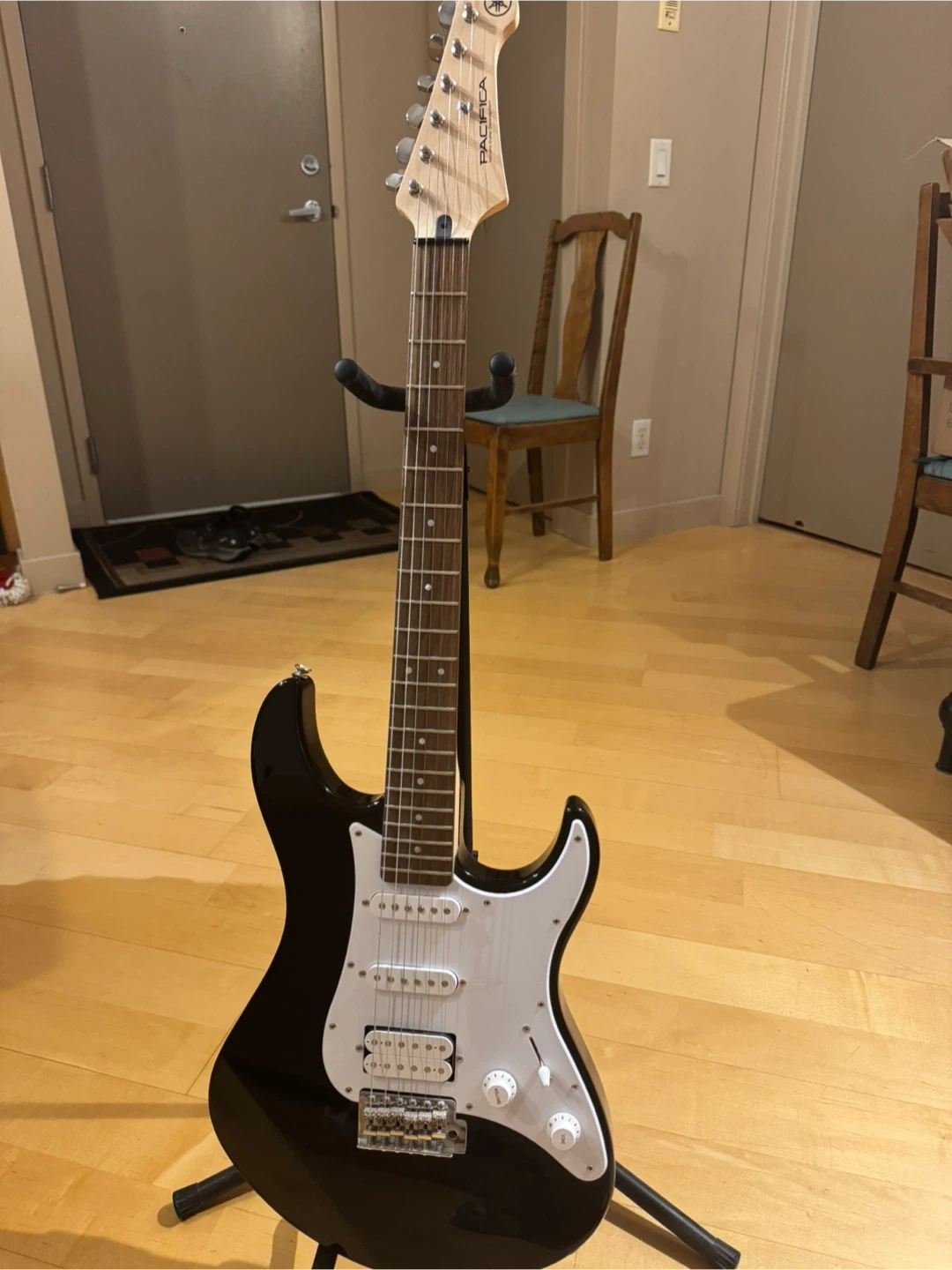 Selling a Yamaha Pacifica (PAC012) electric guitar along with a Fender Frontman 10G amplifier, guitar stand and audio jack. All items are in near brand new condition as they have barely been used. Selling as I don’t get to play anymore.
