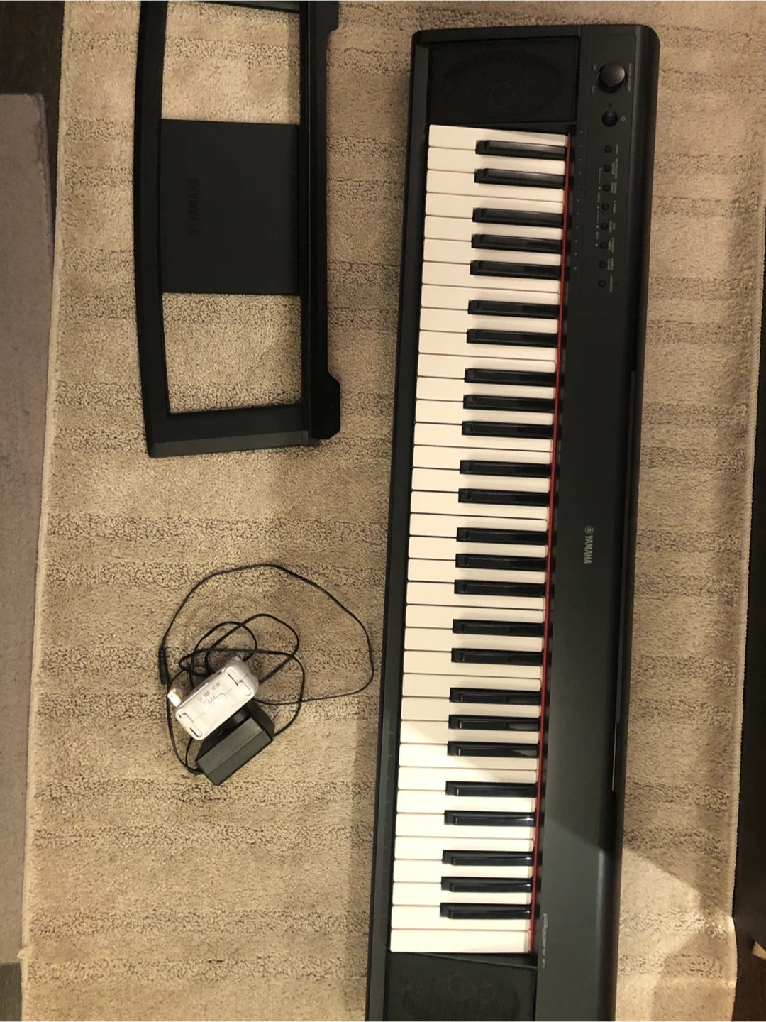 Selling a Yamaha Piaggero NP-11 keyboard in great condition! It comes with the power adapter PA-130B and a music rest. Perfect for anyone looking to start playing or for a portable keyboard option
