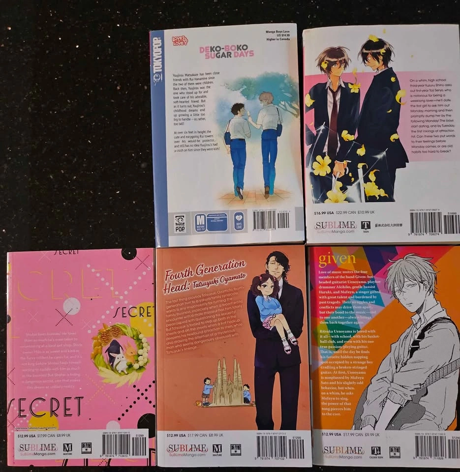 Go for it Nakamura! Pt. 1 | $10 Go for it (Again) Nakamura! Pt. 2 | $10 --------------------------------------------------------- Secret XXX | $10 Seven Days Monday->Sunday | $20 Fourth Generation Head: Tatsuyuki Oyamoto | $15 Given | $10 DekoBoko Sugar Days | $10 (Has some non straight pages at the end of the book) Or $60 for all Feel free to message if you have any questions!