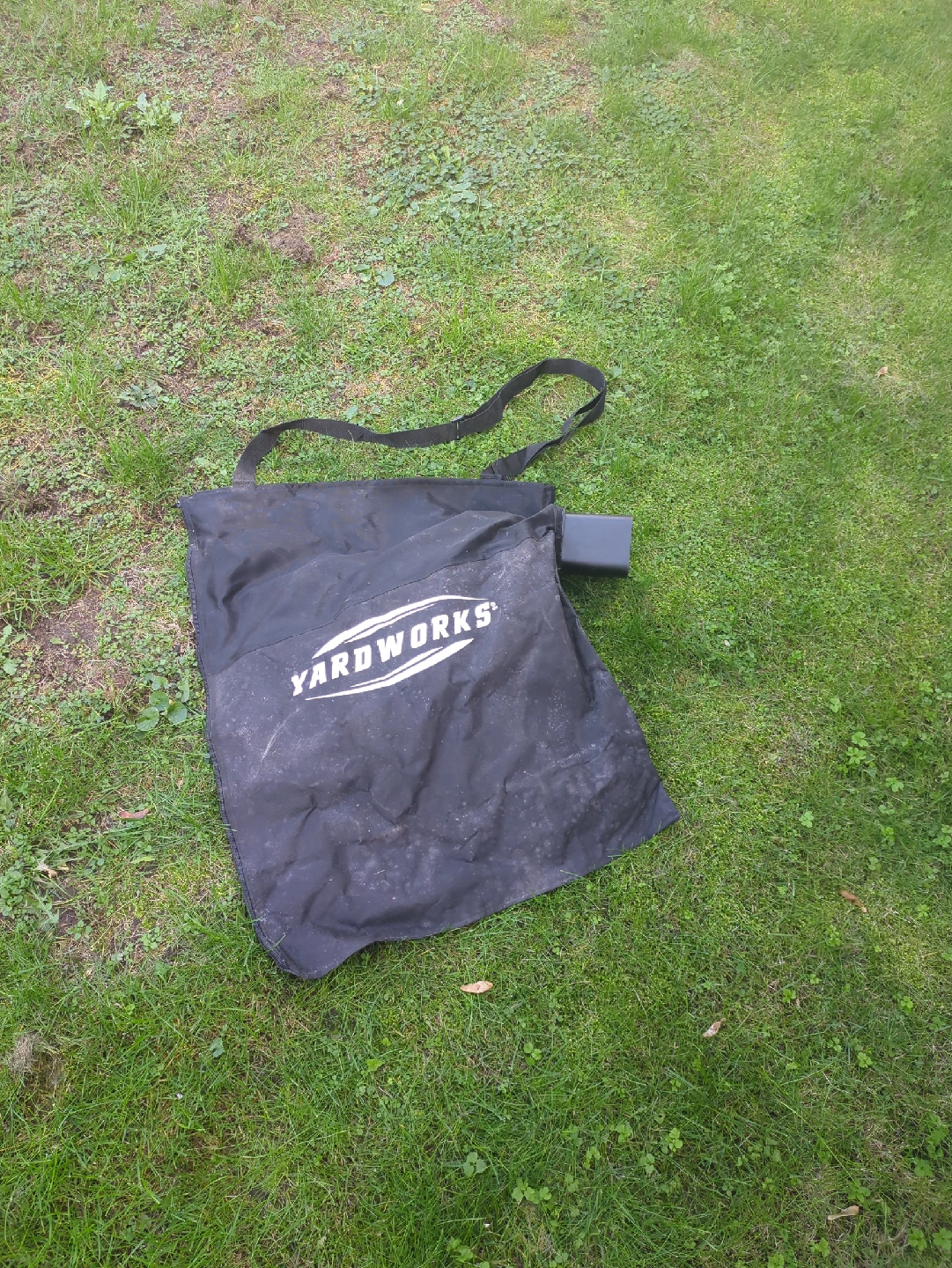 Selling a Yardworks 10A electric leaf blower/vac with bag but no blower attachment, works great! , It has two speeds: 12,500 & 15,000 RPM, 140 & 200MPH. Comes with a bag for easy collection of leaves and debris