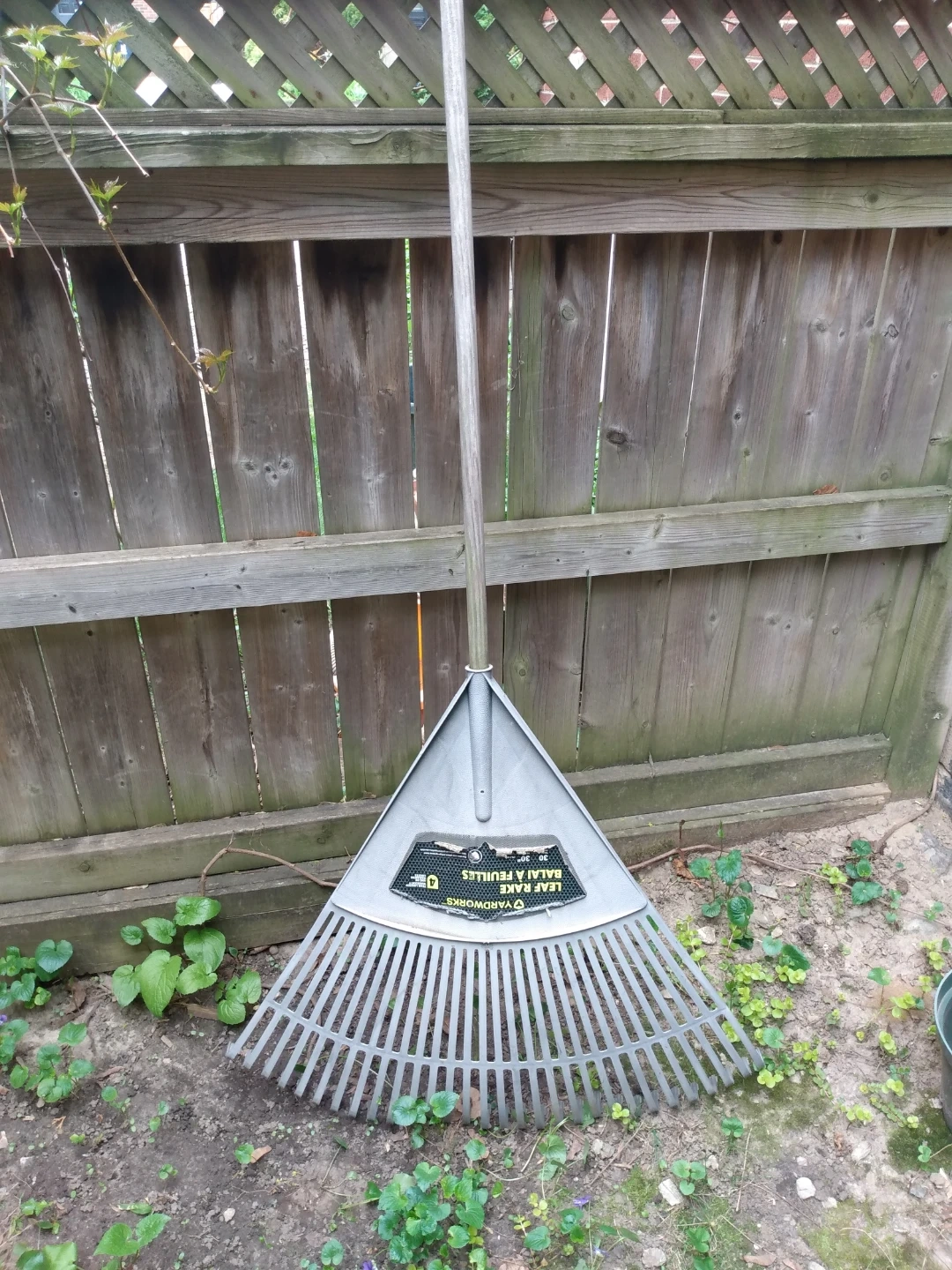 Yardworks plastic rake. Large. Never used but stored outdoors.