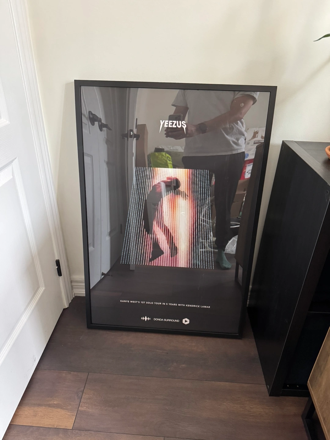 Selling a framed poster from Kanye West's Yeezus tour, featuring Kendrick Lamar! It commemorates Kanye's first solo tour in 5 years. It's in great condition and ready to be displayed. The frame is the IKEA Ribba frame. Measures 3 ft by 2 ft. Cash only